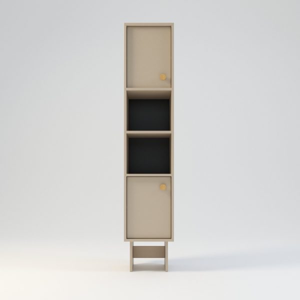 Der Kagawa Säulenschrank wurde mit Blick auf Alltagskomfort und Langlebigkeit entwickelt und ist somit perfekt für anspruchsvolle Badezimmer geeignet. Da der Schrank aus hochwertigem Laminat gefertigt ist, hält er hoher Luftfeuchtigkeit und häufigem Wasserkontakt stand. Sein Design wurde sorgfältig durchdacht, um Komfort und Funktionalität zu gewährleisten. Dank der Unterteilung in offene und geschlossene Bereiche können Sie den Inhalt übersichtlich nach Verwendungszweck organisieren und so den Alltag erleichtern. Im offenen Bereich sind Kosmetikartikel, Handtücher und andere Kleinigkeiten schnell griffbereit, während sich gleichzeitig Dekorationen wie Duftkerzen oder dekorative Behälter ansprechend präsentieren lassen. Der geschlossene Bereich sorgt für Ordnung und verbirgt weniger ansehnliche Gegenstände. Die Türen sind mit Soft-Close-Scharnieren ausgestattet, was den Bedienkomfort zusätzlich erhöht. Der Korpus ist 175 cm hoch, die 25 cm hohen Füße verleihen dem Schrank nicht nur Leichtigkeit, sondern erleichtern auch die Reinigung darunter.