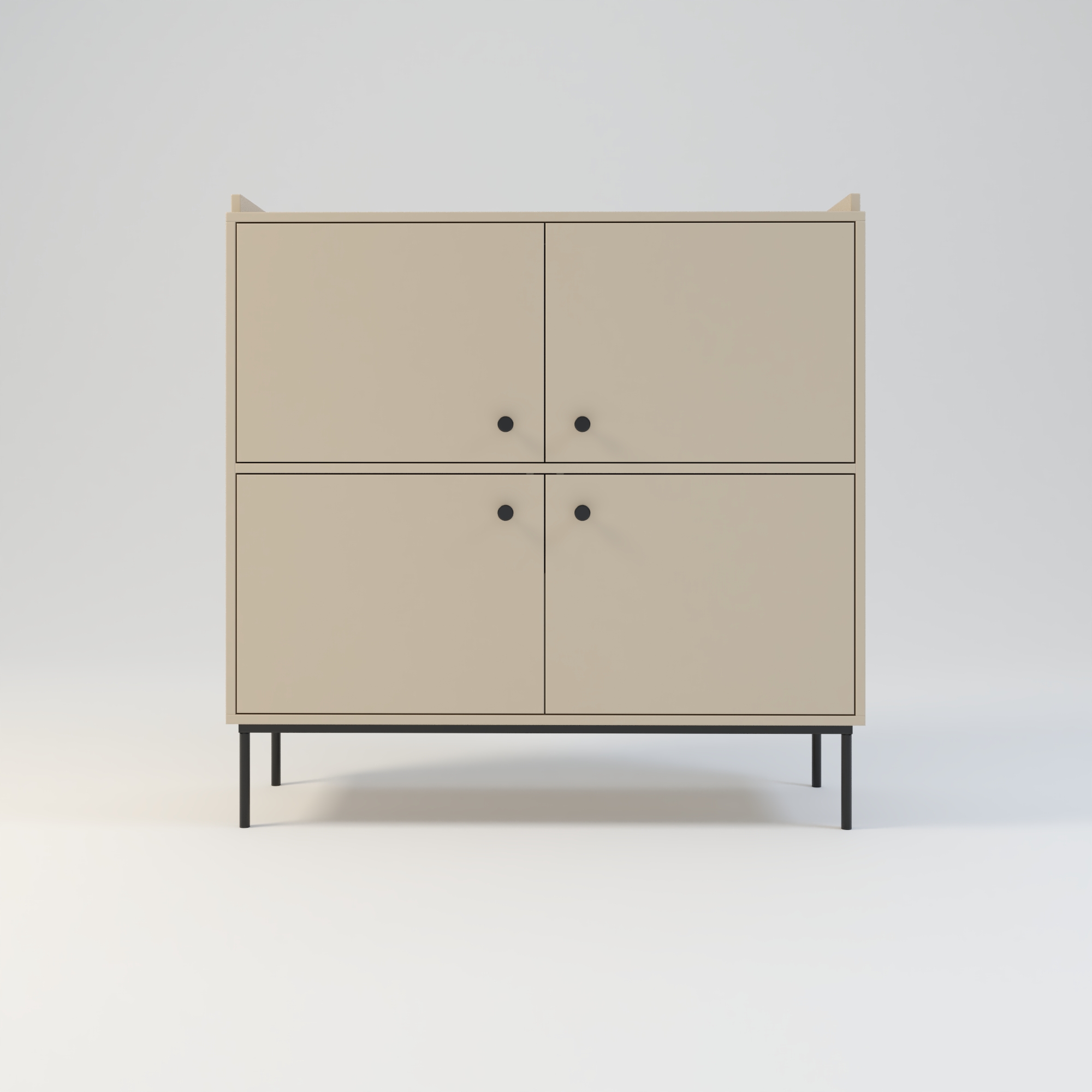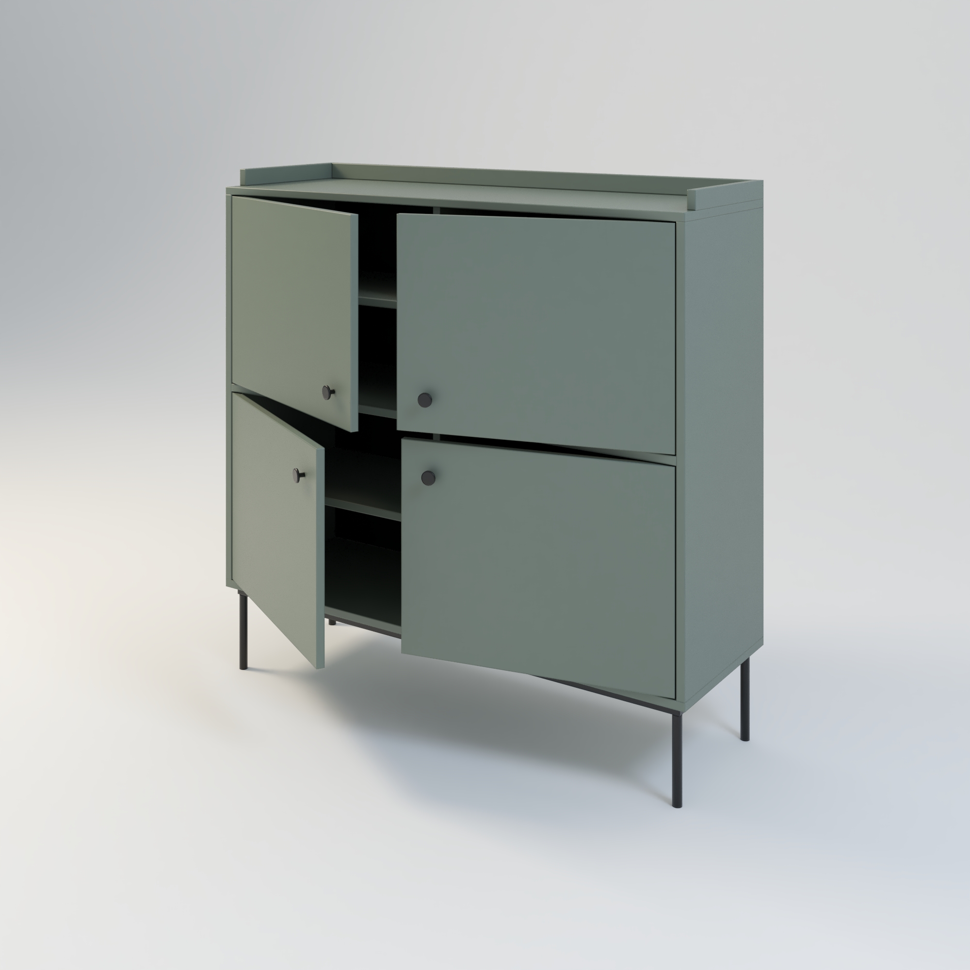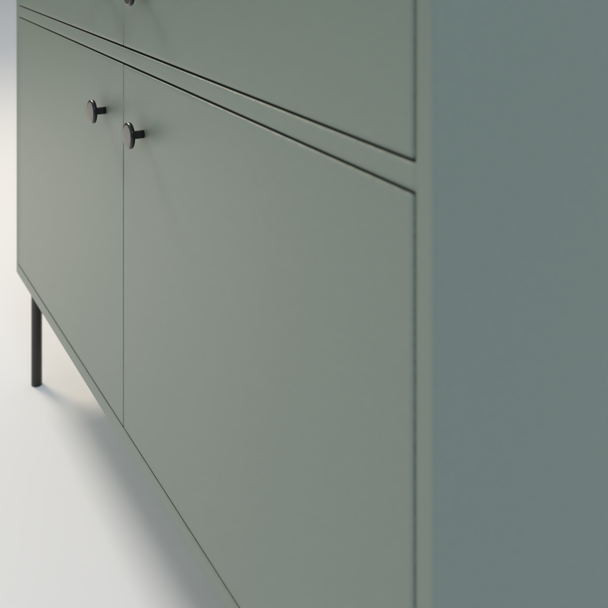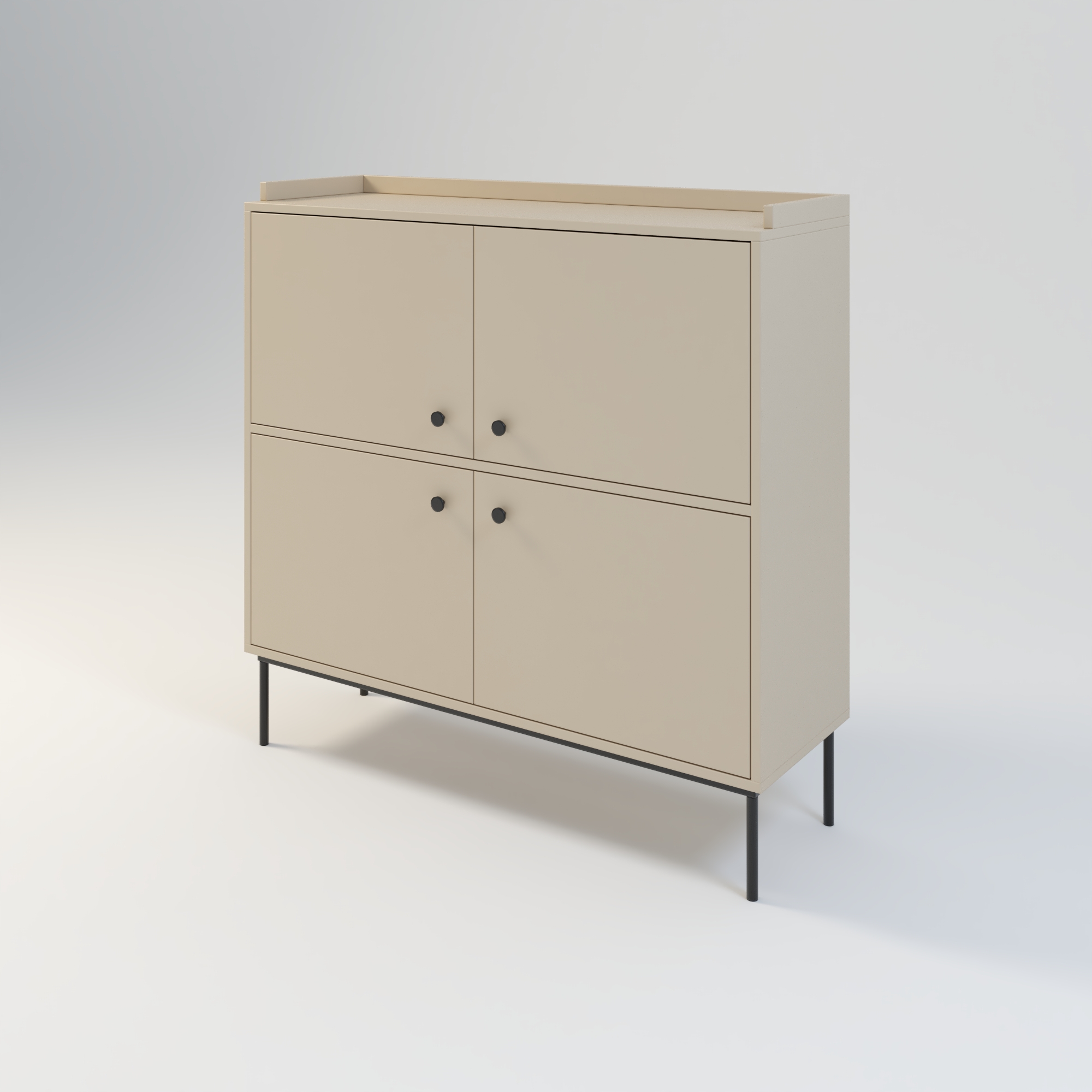 Nowoczesna komoda dedykowana do wnętrz w stylu minimalistycznym. Prosta w formie i bardzo funkcjonalna konstrukcja. Cztery niezależne komory do przechowywania oferuje dużą przestrzeń i ułatwiają segregację rzeczy. Szafka w całości wykonana z wysokiej jakości płyty laminowanej. Drzwi wyposażone w zawiasy z cichym domykiem.