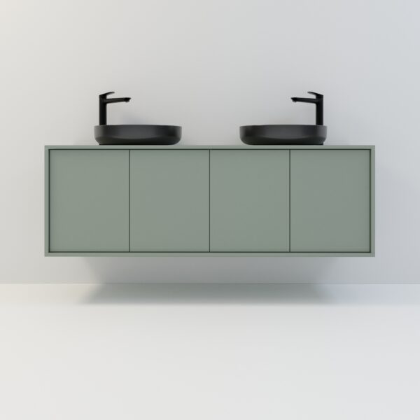 Der Minimal 14 wurde mit Blick auf den täglichen Komfort entwickelt, sodass jede seiner Funktionen ihren Zweck erfüllt. Der Schrank besteht aus strapazierfähigem Laminat, was ihn widerstandsfähiger gegen Feuchtigkeit und Beschädigungen macht. Die Wandmontage erleichtert die Reinigung und ermöglicht eine optimale Nutzung des Platzes unter dem Schrank. Soft-Close-Scharniere sorgen für ein geräuschloses Schließen und erhöhen so den Komfort. In der grifflosen Ausführung öffnen sich die Türen dank des Kippmechanismus per Knopfdruck. Der Schrank bietet im Inneren zwei praktische Ablagen für hohe Reinigungsmittel und Badaccessoires. Er ermöglicht den Einbau von einem oder zwei Waschbecken – links, rechts oder mittig – und vier geräumige Türen bieten bequemen Zugriff. So bleibt Ihr Bad im Alltag stets ordentlich.