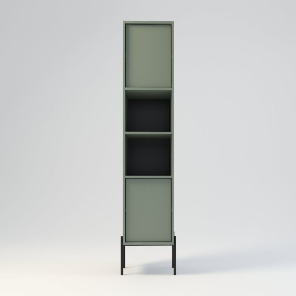 Der minimalistische Badschrank wurde mit Blick auf den täglichen Komfort entworfen. Hochwertige Laminatplatten garantieren Langlebigkeit und machen diesen Schrank auch für stark frequentierte Badezimmer geeignet. Grifflose Türen mit Kippmechanismus ermöglichen ein schnelles Öffnen, selbst mit nassen oder belegten Händen. Türgriffe sind optional erhältlich. Dies ist die perfekte Lösung für alle, die Wert auf Komfort und Einfachheit im Alltag legen. Die Säule verfügt über zwei offene Regalböden, die einen einfachen Zugriff auf häufig verwendete Kosmetikartikel, Handtücher und Accessoires ermöglichen und gleichzeitig Dekorationen, Duftkerzen oder stilvolle Behälter stilvoll präsentieren. Die klare Aufteilung in offene und geschlossene Bereiche erleichtert die Organisation Ihrer Badutensilien. Die eingelassenen Türen sind mit Soft-Close-Scharnieren ausgestattet. Der Säulenkorpus ist 175 cm hoch, das Metallgestell 25 cm. Verstellbare Füße sorgen für präzises Ausrichten.