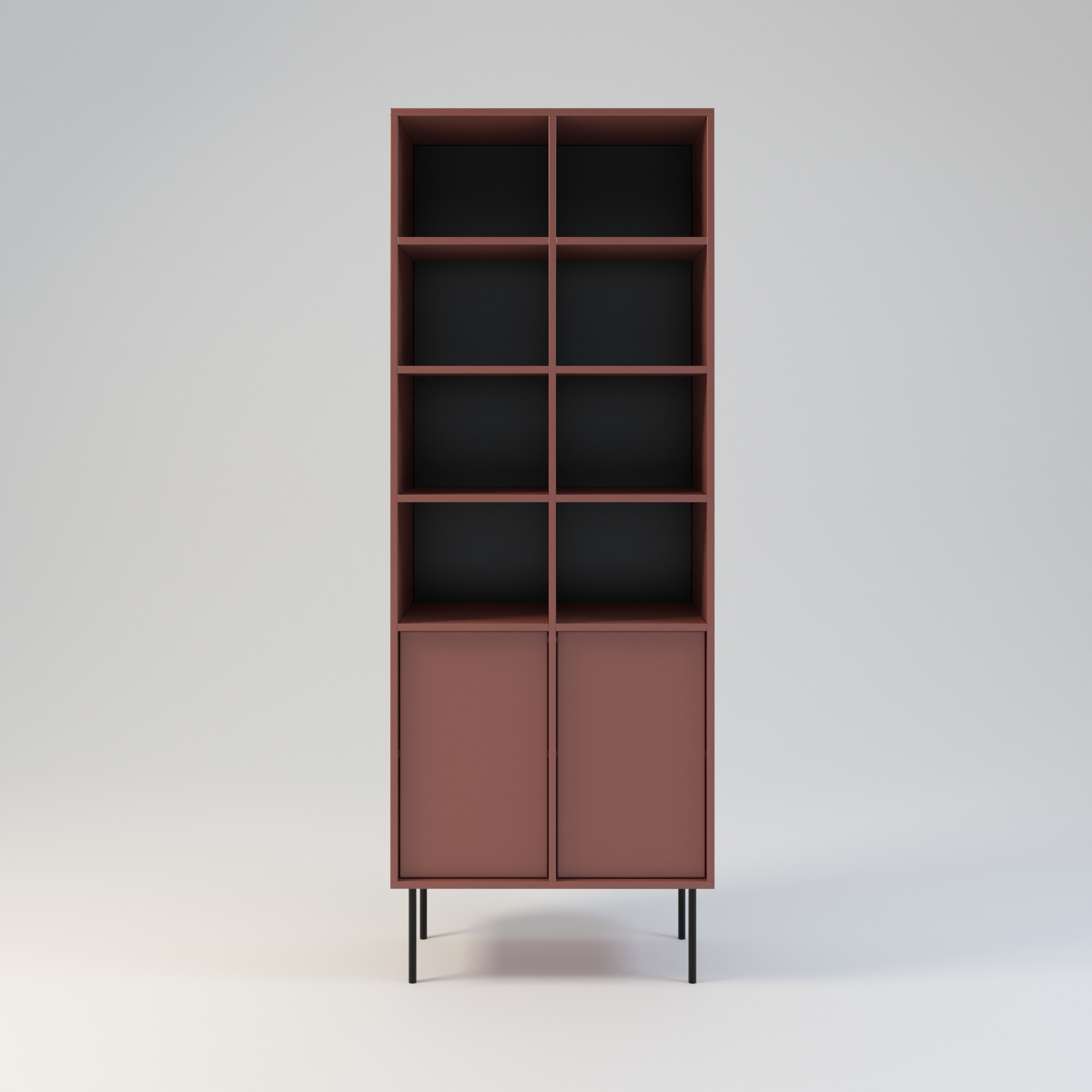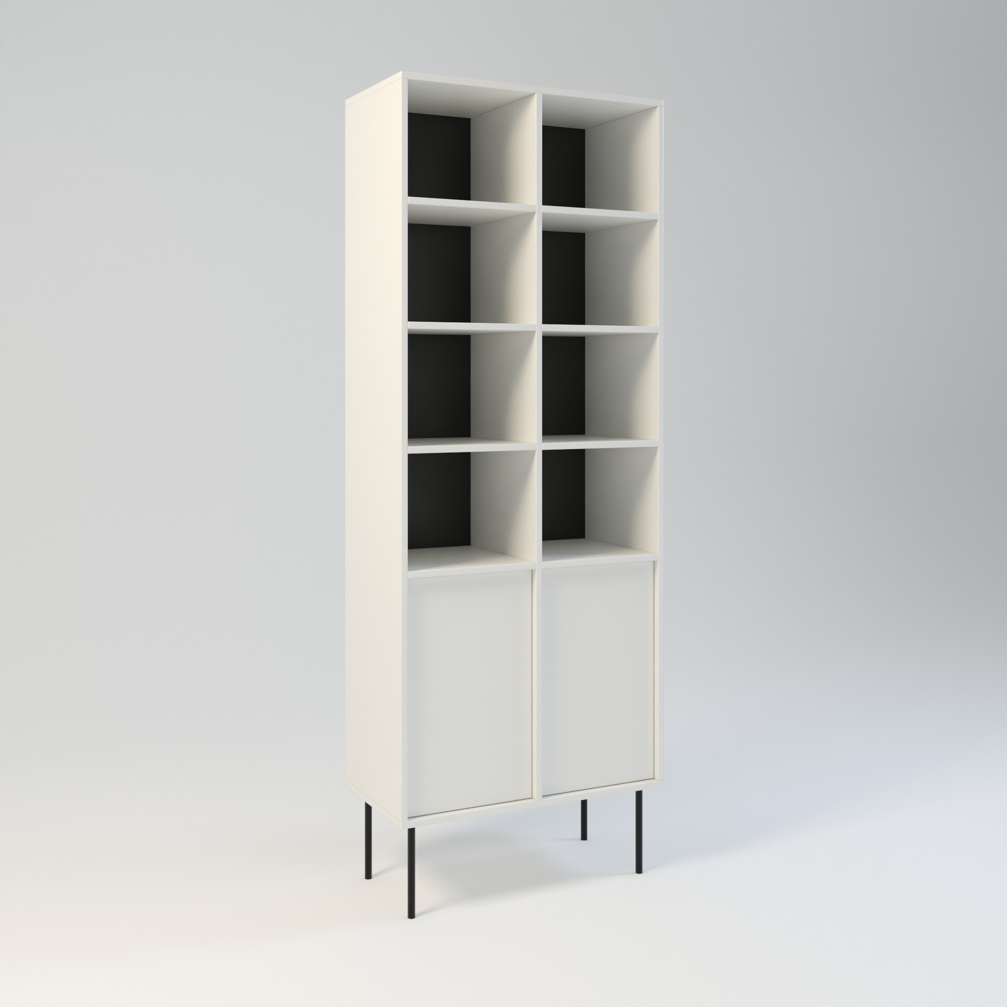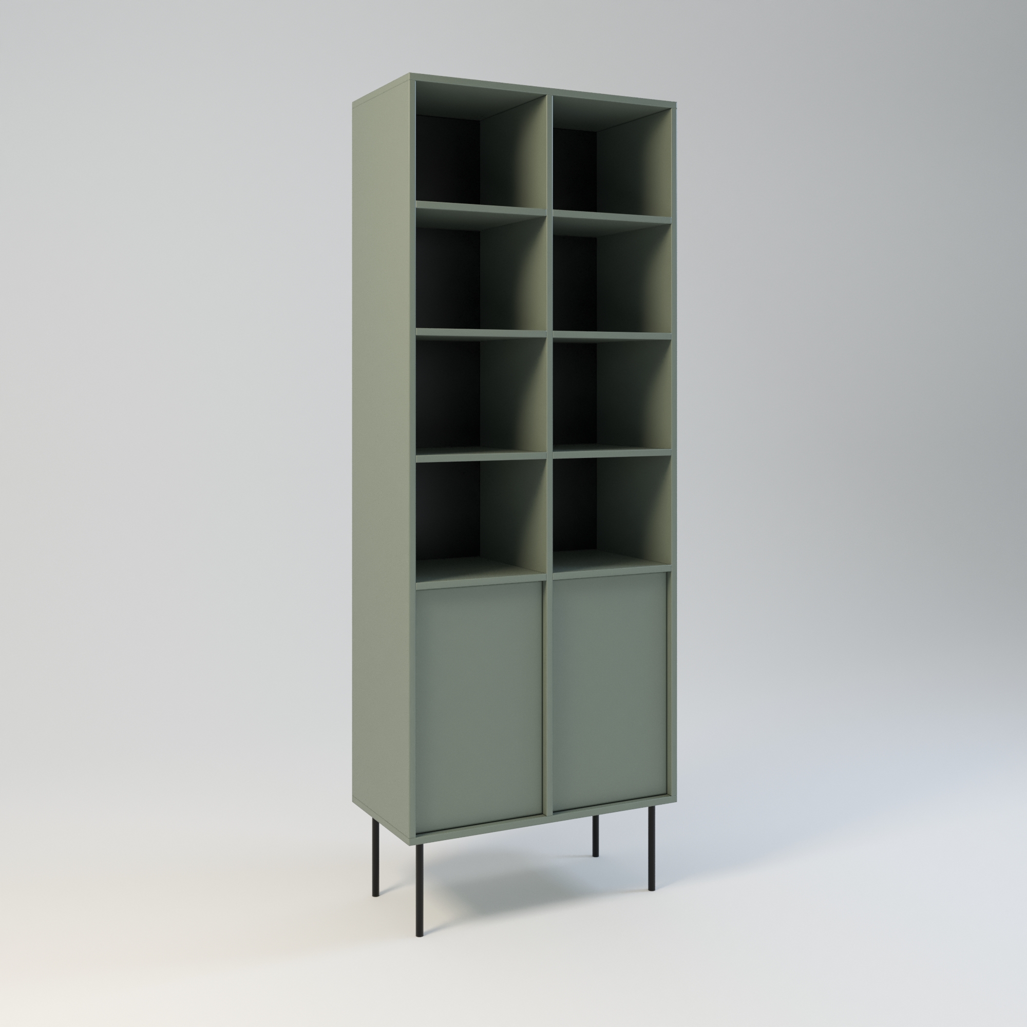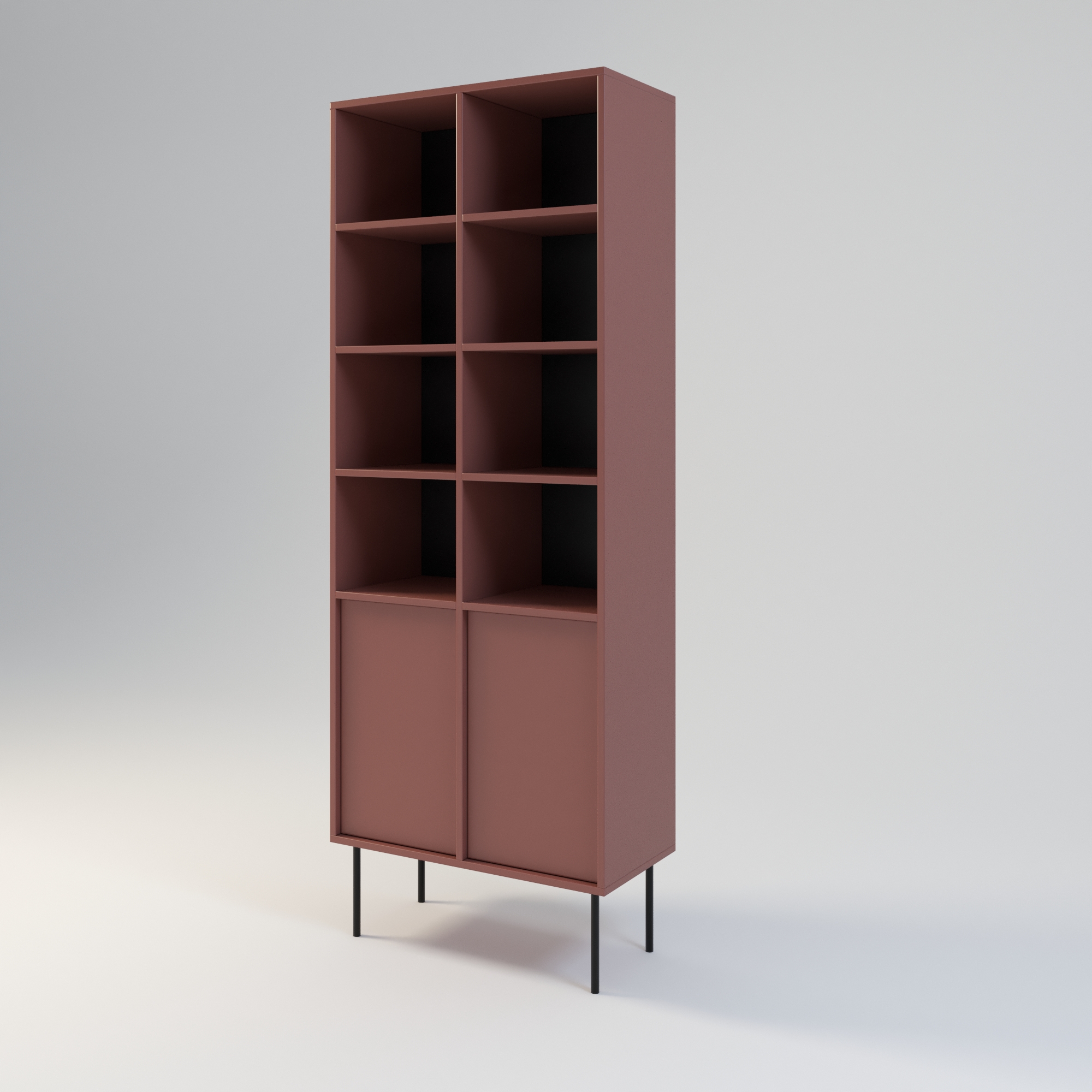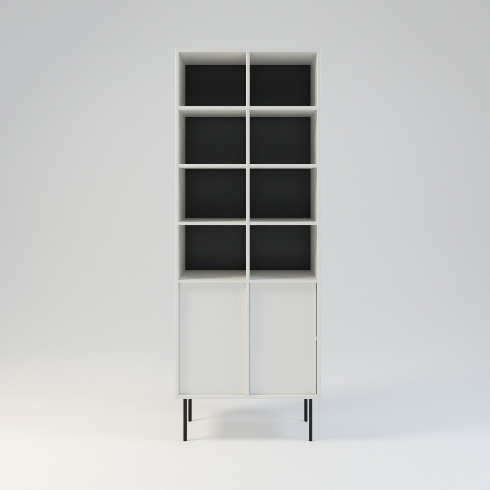 Minimalistyczny regał na książki. Prosty w formie, o bardzo funkcjonalnej konstrukcji. Oferuje dużą przestrzeń do przechowywania. Na półkach możemy wyeksponować własną kolekcję książek oraz oryginalne dekoracje i ozdoby. Drzwi wyposażone w zawiasy z cichym domykiem, otwierane za pomocą mechanizmu tip-on. Uchwyty drzwiowe dostępne jako dodatkowa opcja. Regał wyposażony w 6 półek. Wysokość półek w świetle to 31 cm. Regały można z sobą łączyć bokami, tworząc w ten sposób większe moduły. Nadaje się do modułowego łączenia z szafą Tara i regałem Ugo.