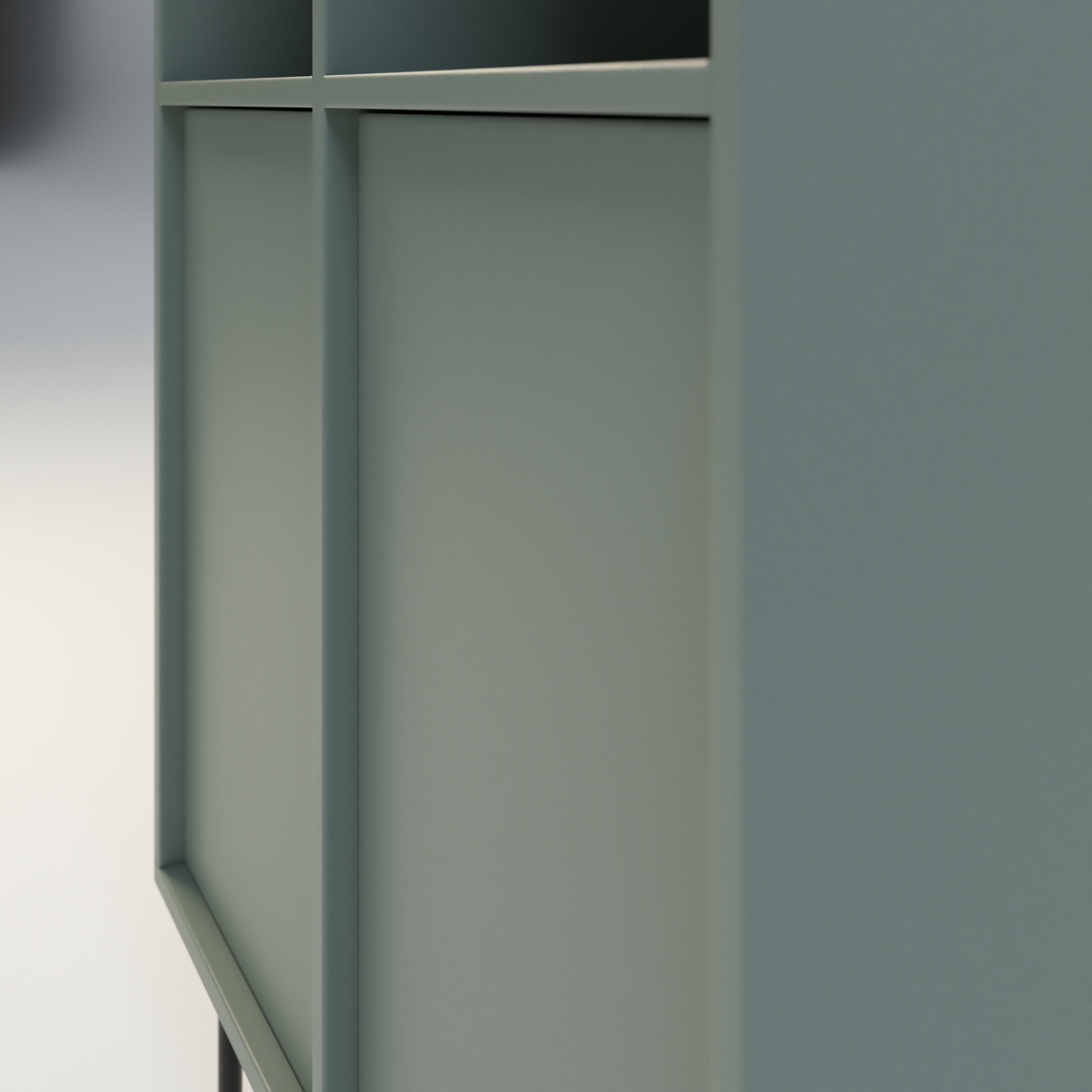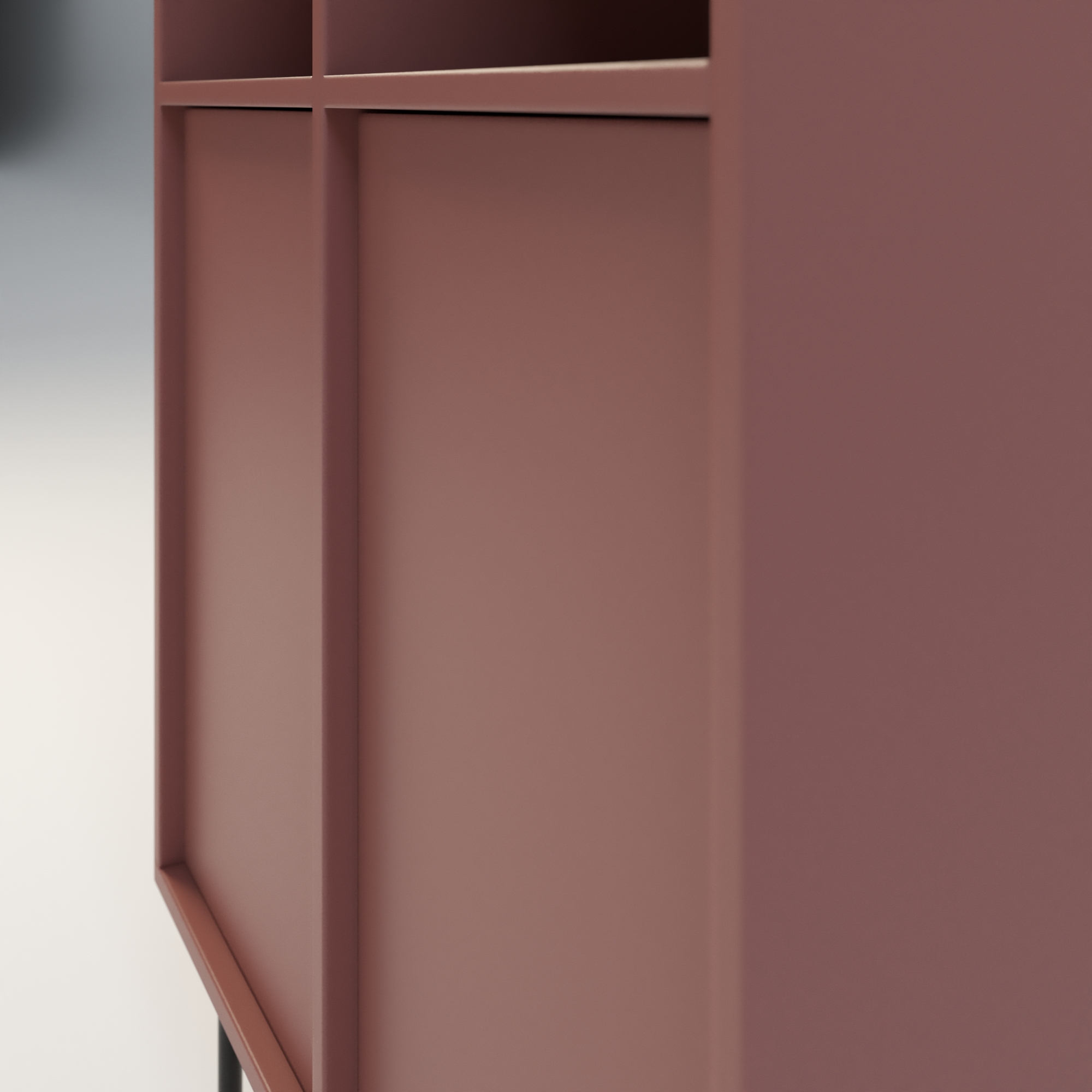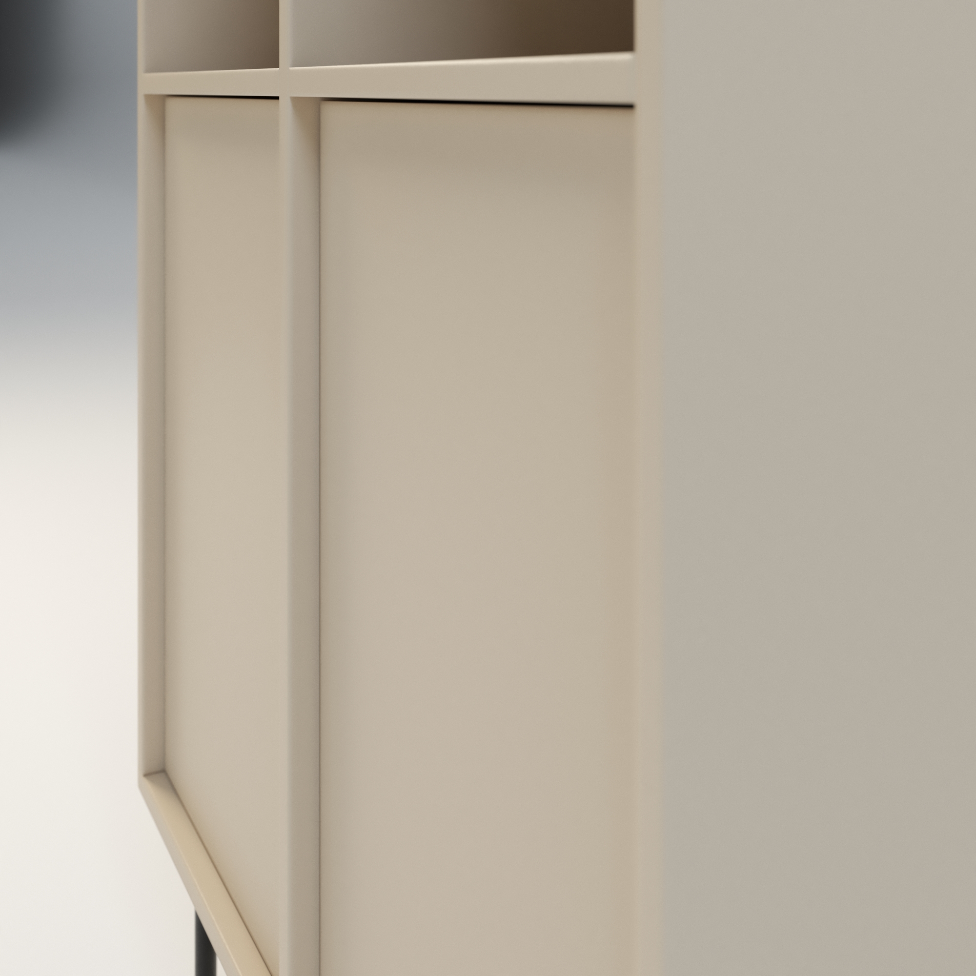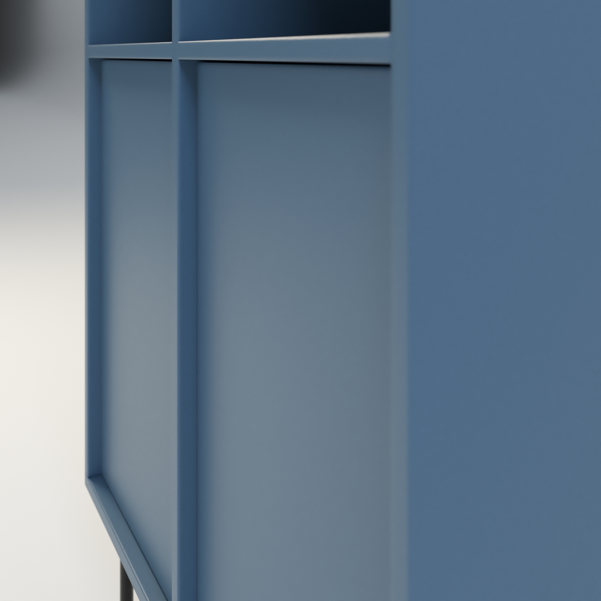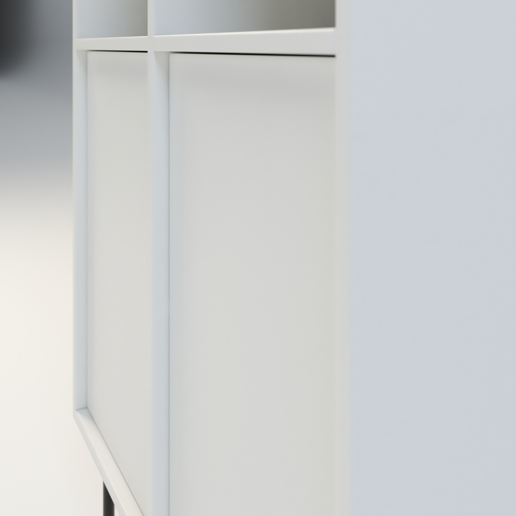 Minimalistyczny regał na książki. Prosty w formie, o bardzo funkcjonalnej konstrukcji. Oferuje dużą przestrzeń do przechowywania. Na półkach możemy wyeksponować własną kolekcję książek oraz oryginalne dekoracje i ozdoby. Drzwi wyposażone w zawiasy z cichym domykiem, otwierane za pomocą mechanizmu tip-on. Uchwyty drzwiowe dostępne jako dodatkowa opcja. Regał wyposażony w 6 półek. Wysokość półek w świetle to 31 cm. Regały można z sobą łączyć bokami, tworząc w ten sposób większe moduły. Nadaje się do modułowego łączenia z szafą Tara i regałem Ugo.