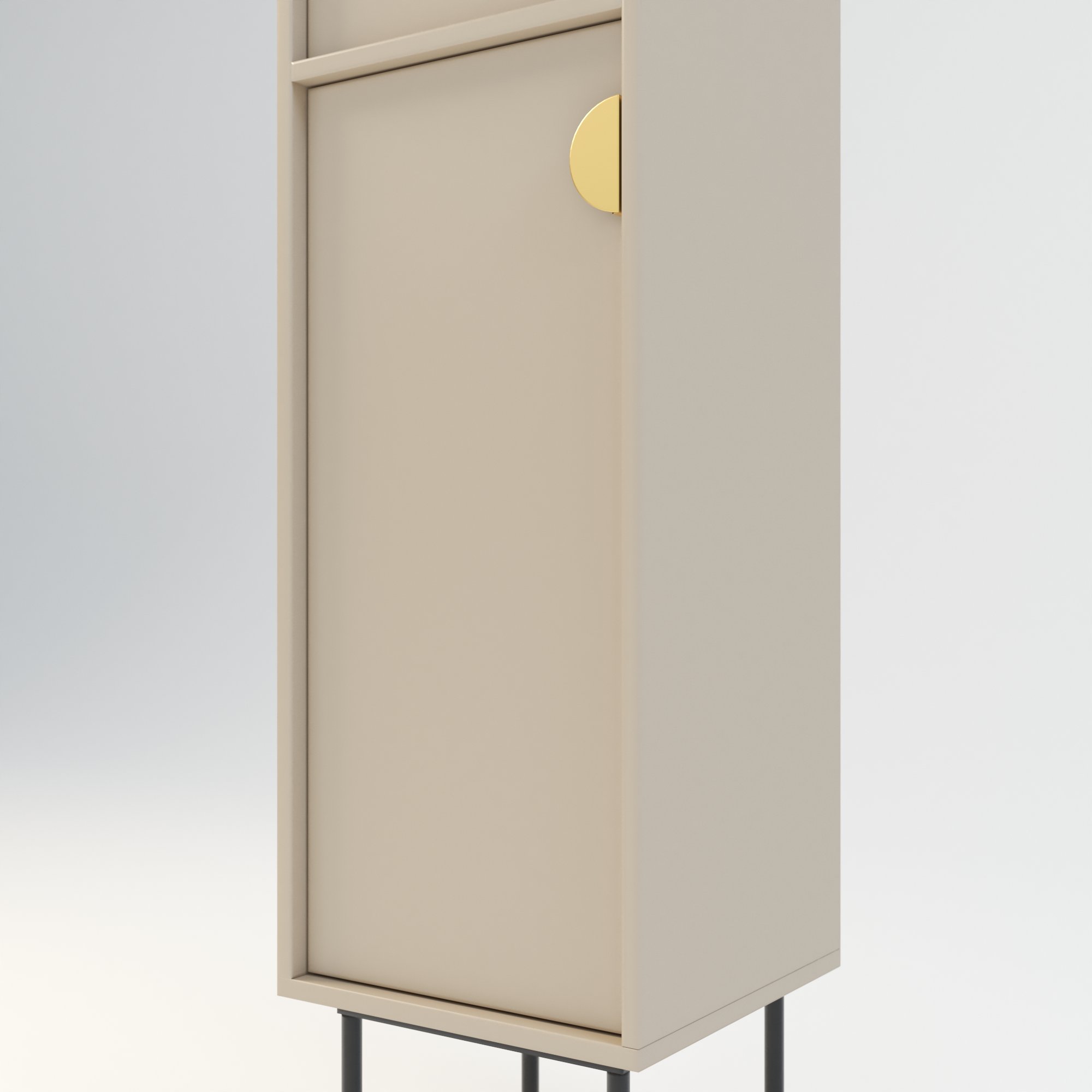 Słupek łazienkowy Komono D świetnie łączy nowoczesną estetykę z codzienną funkcjonalnością, dlatego sprawdzi się w każdej łazience. Jego prosty i minimalistyczny design doskonale komponuje się z różnorodnymi aranżacjami – zarówno klasycznymi, jak i nowoczesnymi. Dzięki temu mebel nie przytłacza przestrzeni, lecz subtelnie ją uzupełnia, zapewniając jednocześnie wygodne i uporządkowane przechowywanie. Co więcej, geometryczne linie i kompaktowa forma nadają wnętrzu lekkości, przez co nawet mniejsze łazienki zyskują na wizualnej przestronności. Konstrukcja słupka została zaprojektowana w sposób przemyślany, dlatego gwarantuje łatwy dostęp do przechowywanych rzeczy. Możesz wybierać spośród wielu wariantów kolorystycznych oraz uchwytów, które dodatkowo podkreślają nowoczesny charakter mebla. W wersji podstawowej Komono D wyposażono w uchwyt drzwiowy typu MOON w eleganckim, złotym odcieniu. Jeśli zależy Ci na połączeniu stylu z praktycznością, ten model będzie strzałem w dziesiątkę.