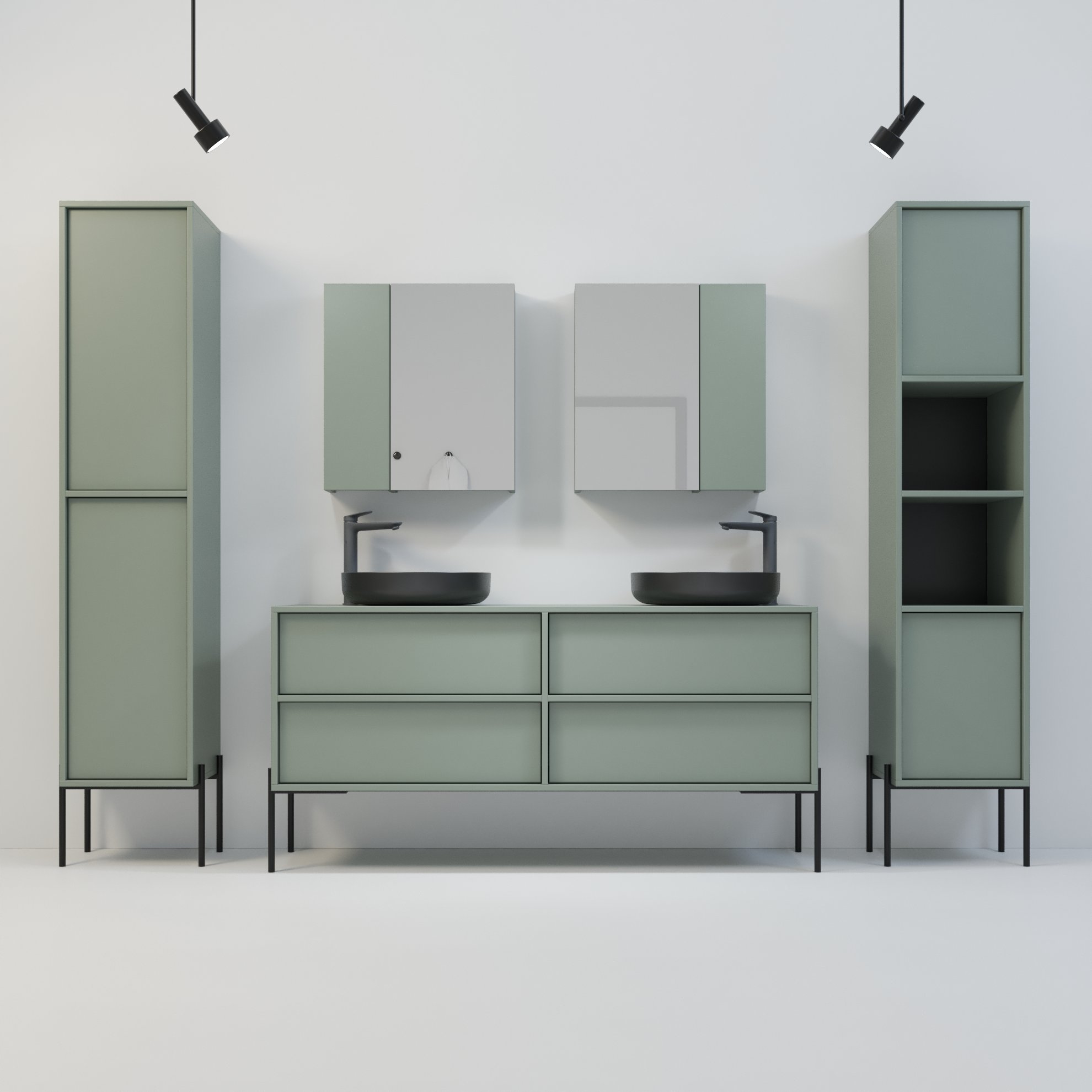 Korpus: w całości wykonany z płyty laminowanej w kolorze zielony eukaliptusowy.