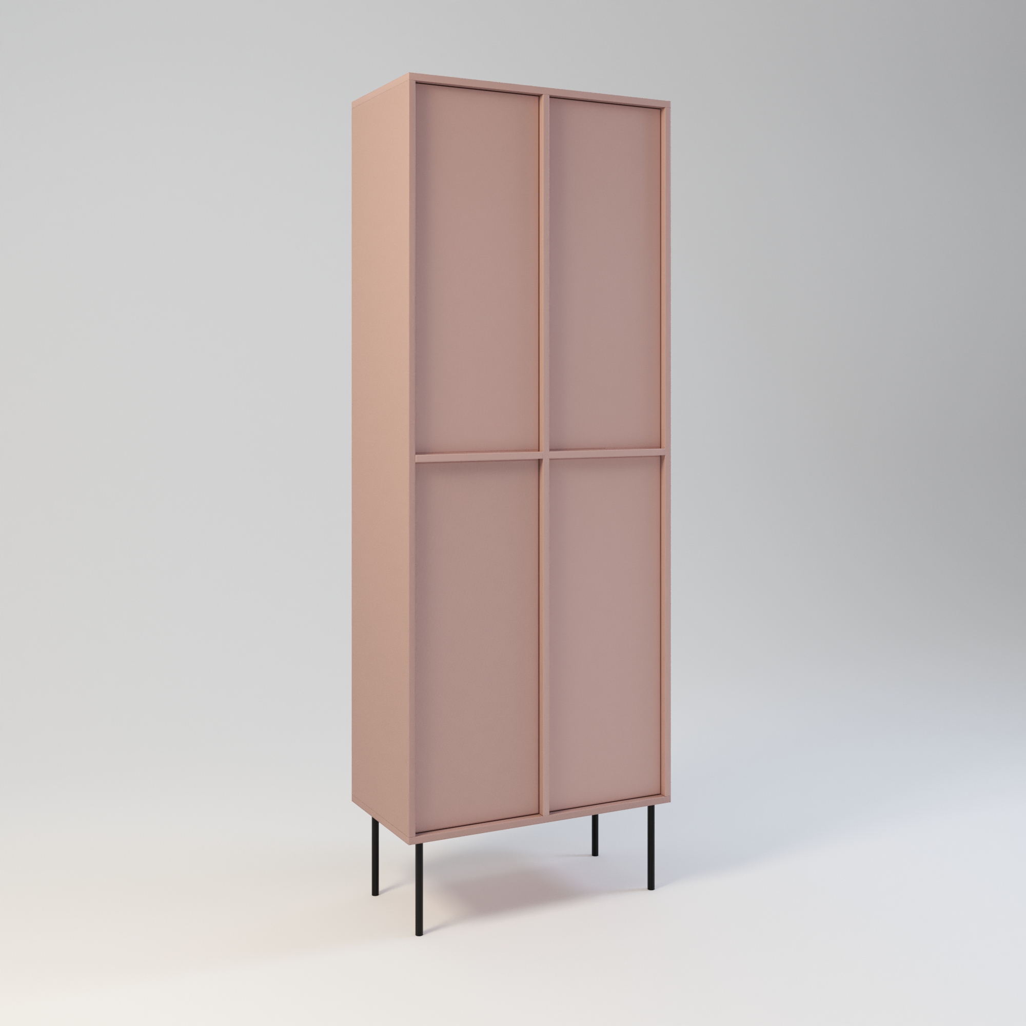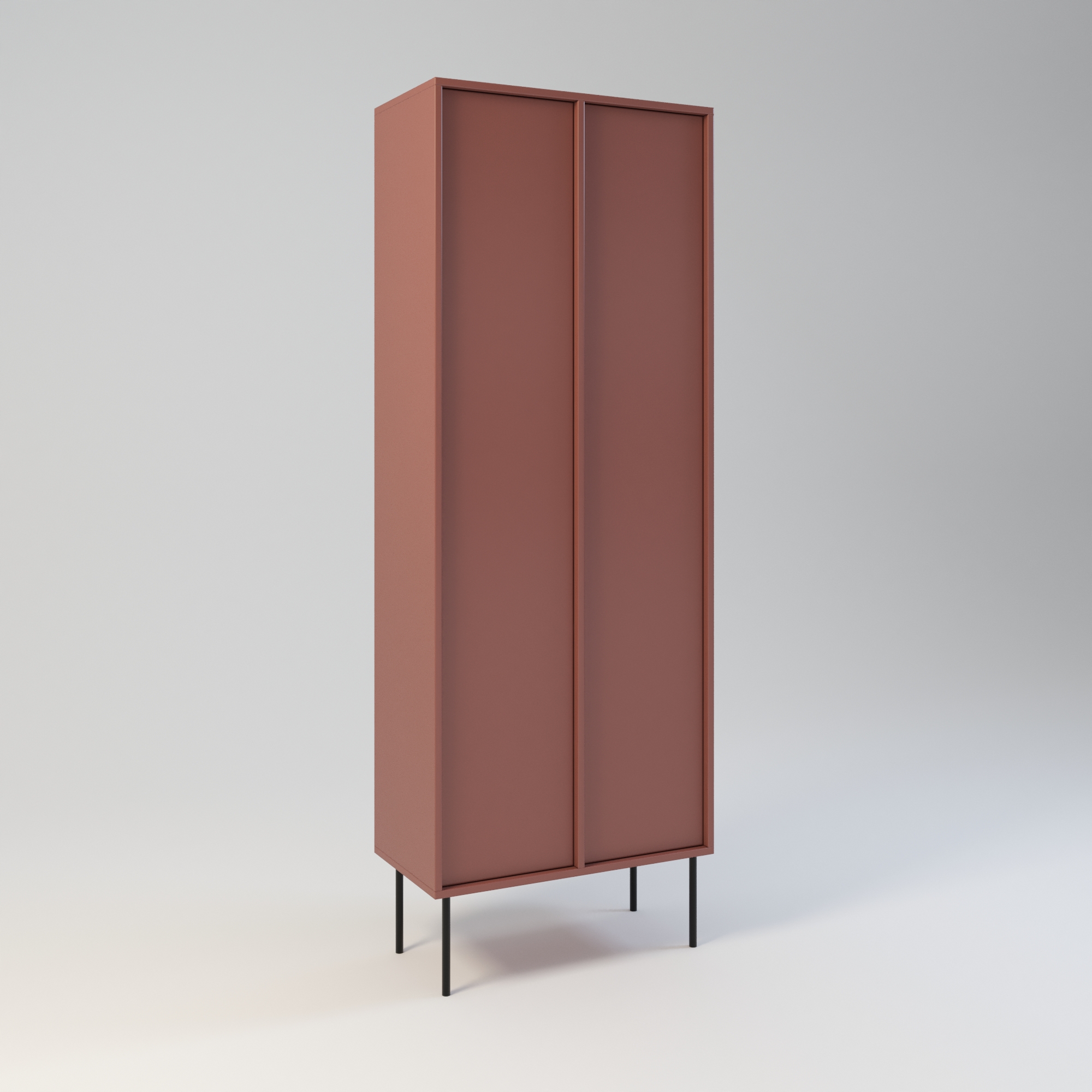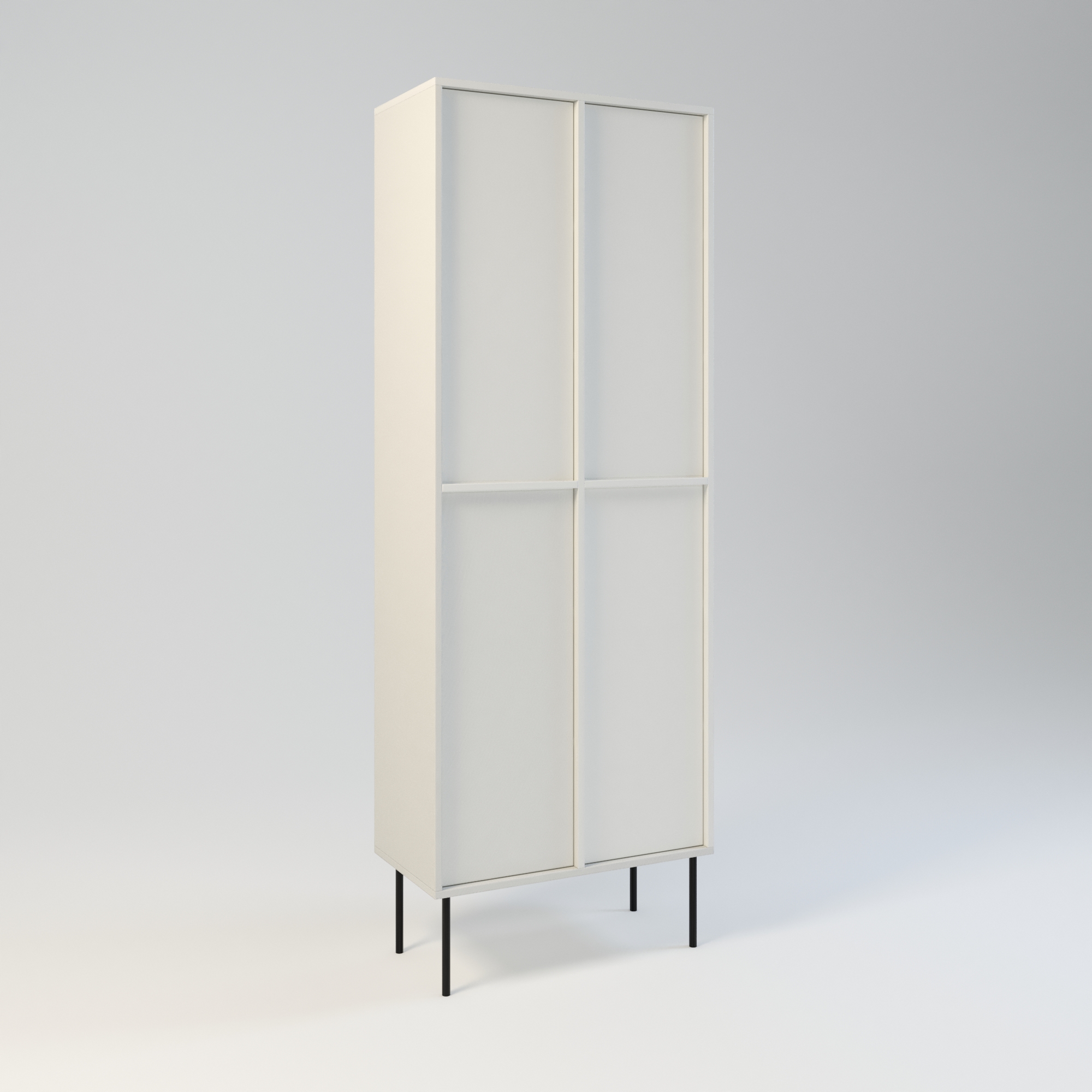 Minimalistyczny szafa o bardzo funkcjonalnej konstrukcji. Oferuje dużą przestrzeń do przechowywania. Wyposażona w 6 półek. Wysokość półek w świetle to 31 cm. Drzwi wyposażone w zawiasy z cichym domykiem, otwierane za pomocą mechanizmu tip-on. Uchwyty drzwiowe dostępne jako dodatkowa opcja. Szafa wykonany w całości z wysokiej jakości płyty laminowanej. Szafy można z sobą łączyć bokami tworząc w ten sposób większe moduły. Szafę można łączyć w większe moduły z regałem Ugo i Hioki
