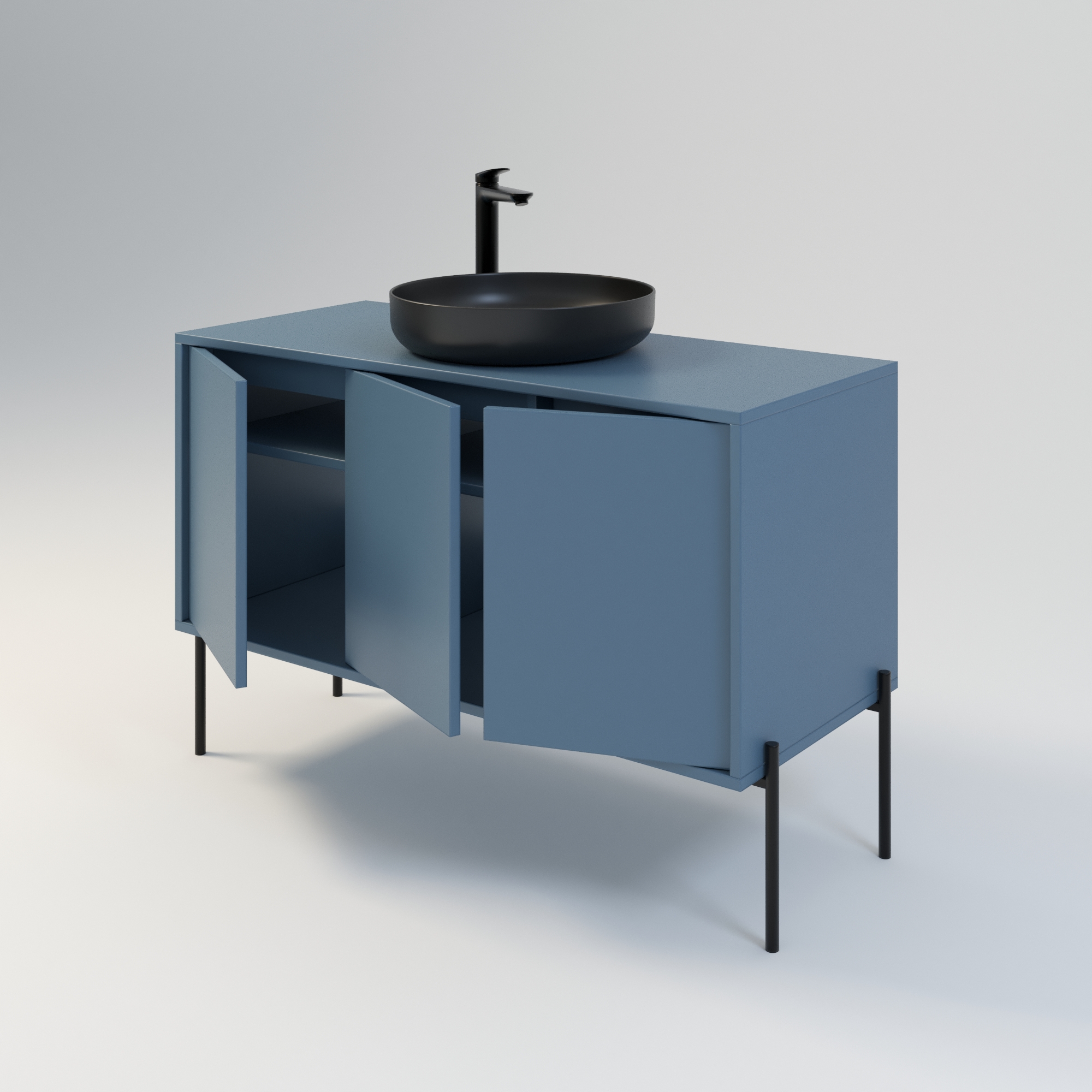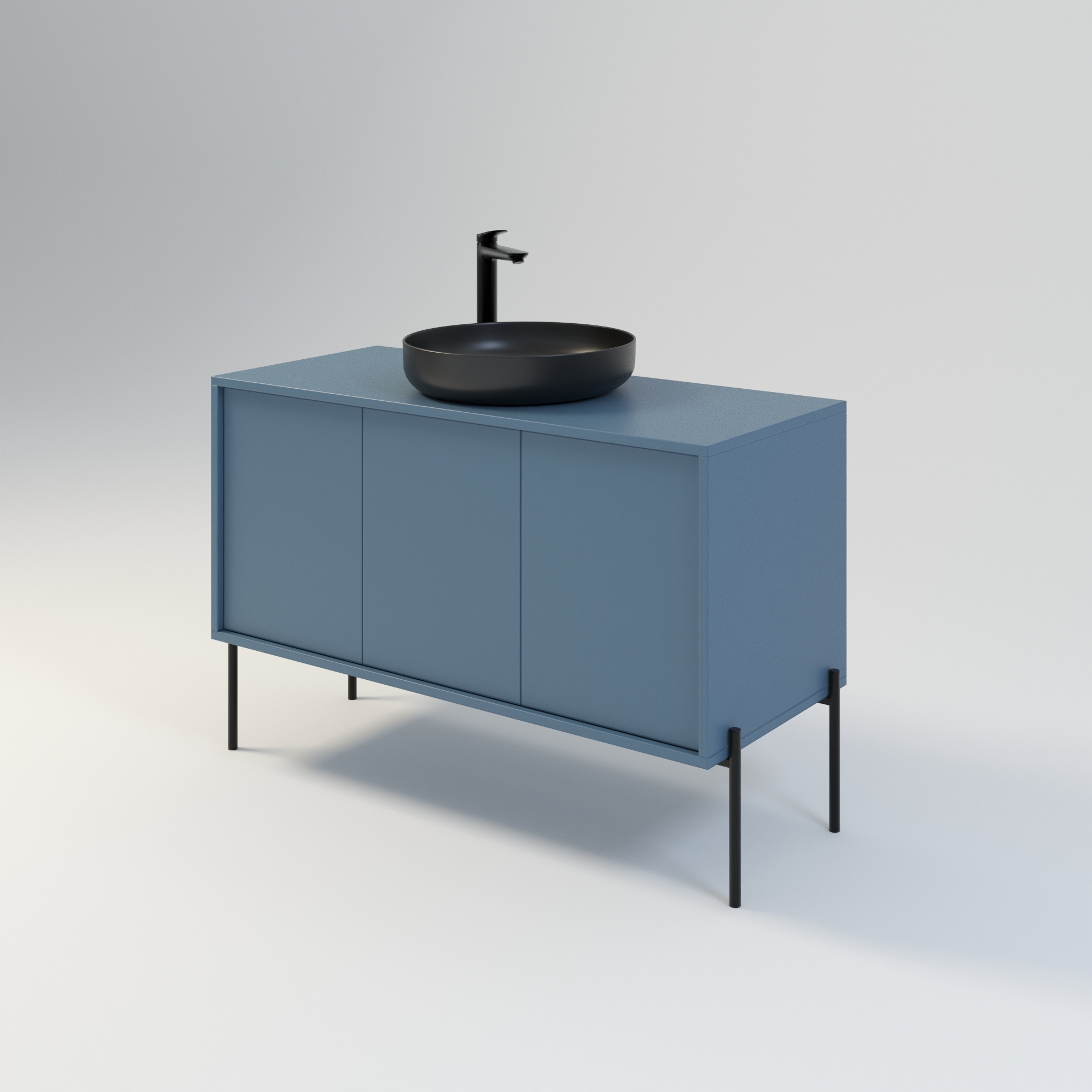 Szafka łazienkowa w stylu minimalistycznym. Zaprojektowana z myślą o osobach ceniących sobie prostotę i elegancję. Drzwi wpuszczone w korpus, otwierane za pomocą bezawaryjnych zawiasów i mechanizmu tip on. Szafka dostępna jest również w opcji z uchwytami drzwiowymi. Szafka w całości wykonana z wysokiej jakości płyty laminowanej. Wewnątrz każdej komory drzwiowej jedna półka. Szerokość szafki razem z nogami metalowymi wynosi 124 cm. Wysokość korpusu szafki to 54cm. Wysokość stelaża metalowego / nóg to 26 cm. Stopki z regulacją ułatwiają precyzyjne wypoziomowanie Umywalka nie wchodzi w skład zestawu.