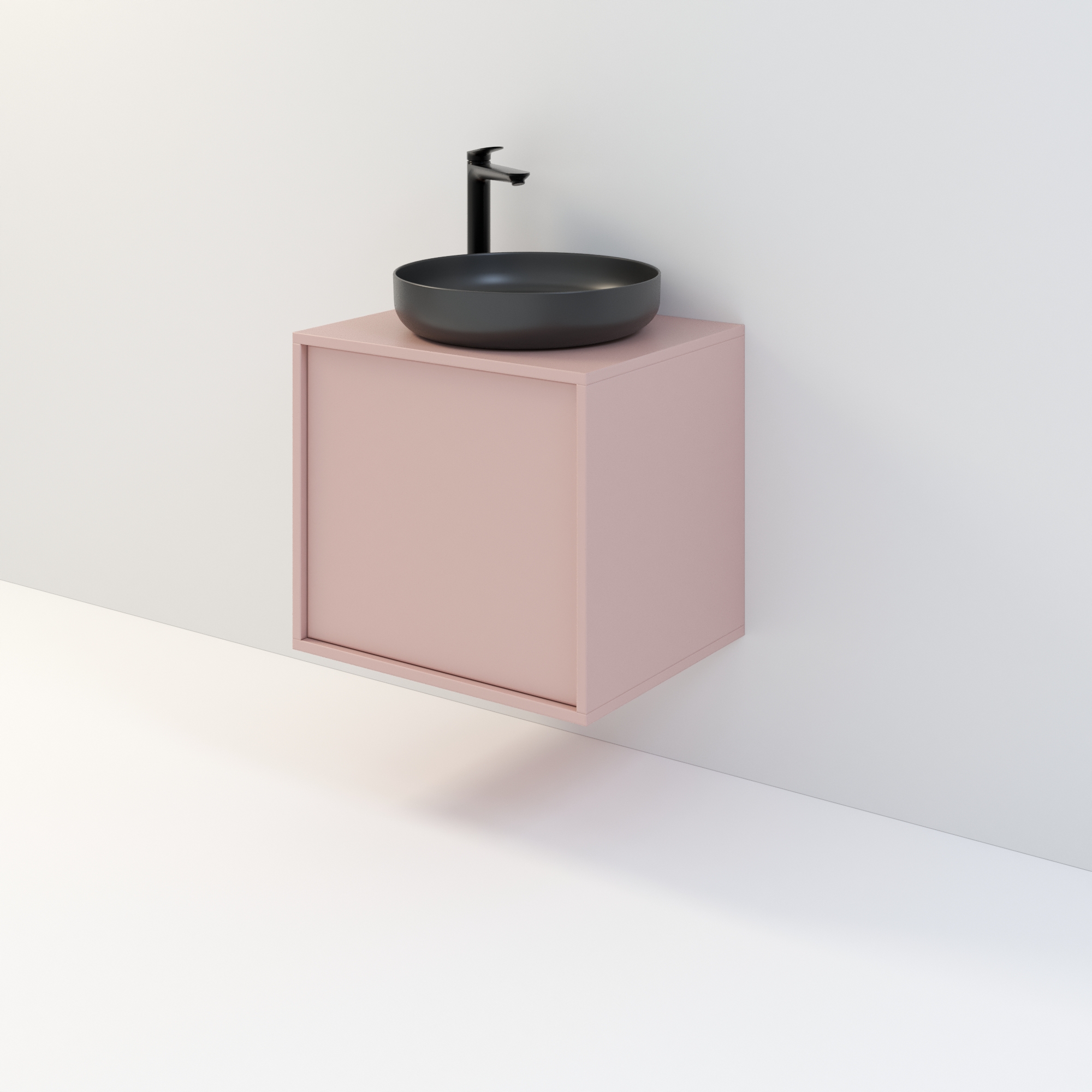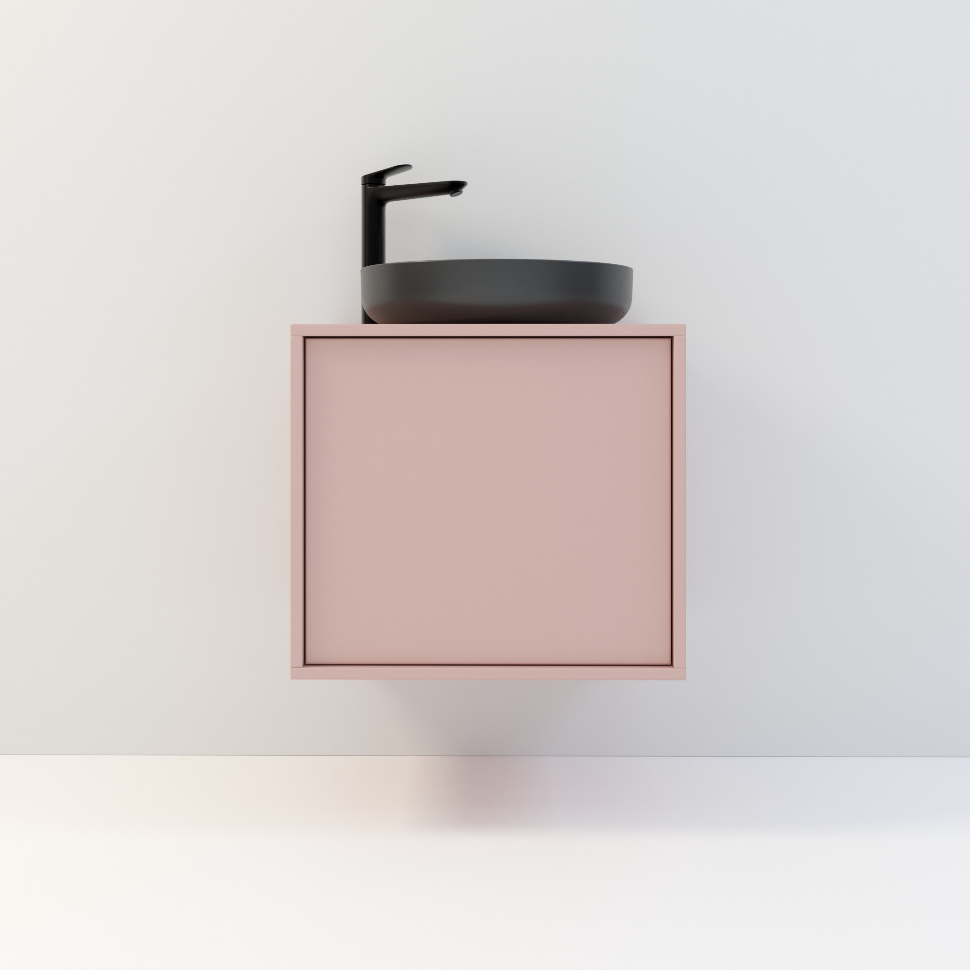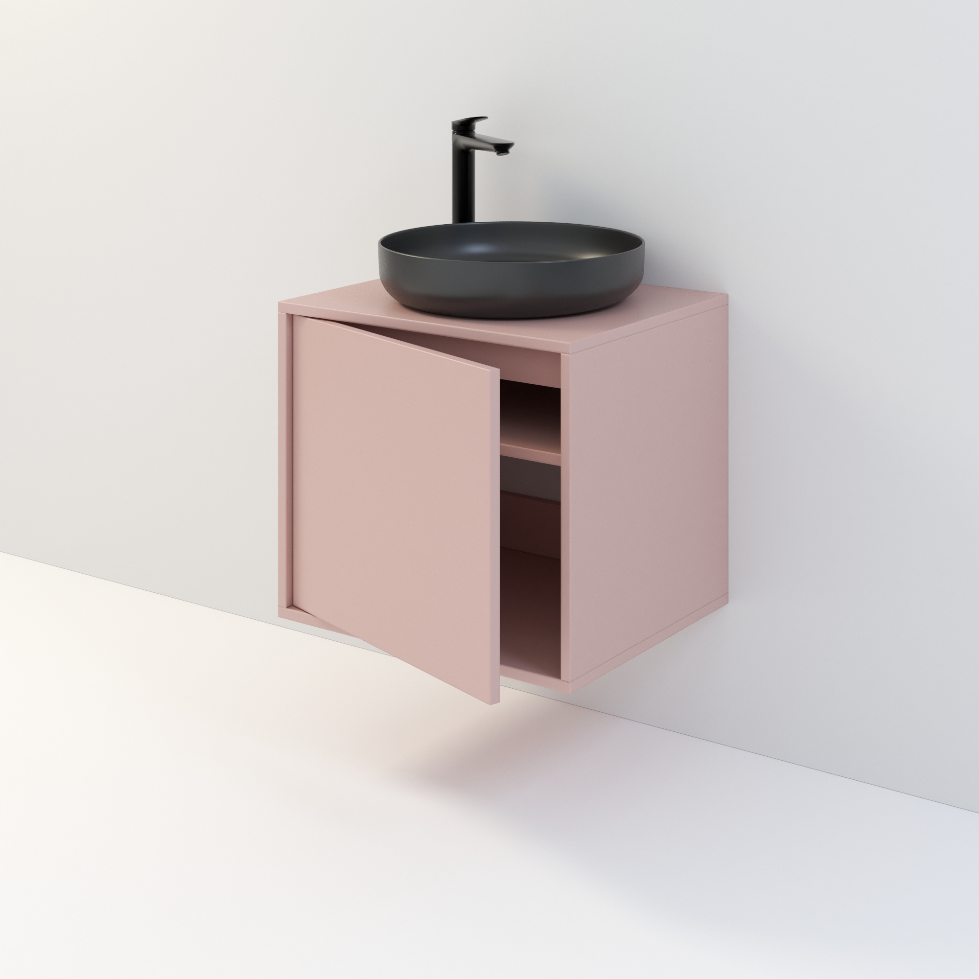 Szafka łazienkowa w stylu minimalistycznym. Zaprojektowana z myślą o osobach ceniących sobie prostotę i elegancję. Drzwi wpuszczone w korpus, otwierane za pomocą bezawaryjnych zawiasów i mechanizmu tip on. Szafka dostępna również w opcji z uchwytem drzwiowym. Szafka w całości wykonana z wysokiej jakości płyty laminowanej. Wewnątrz jedna półka. Umywalka nie wchodzi w skład zestawu.