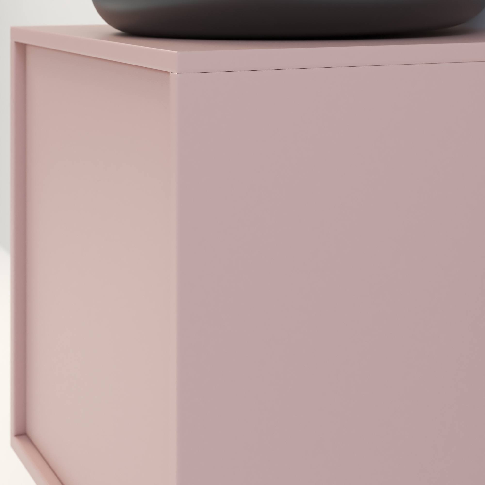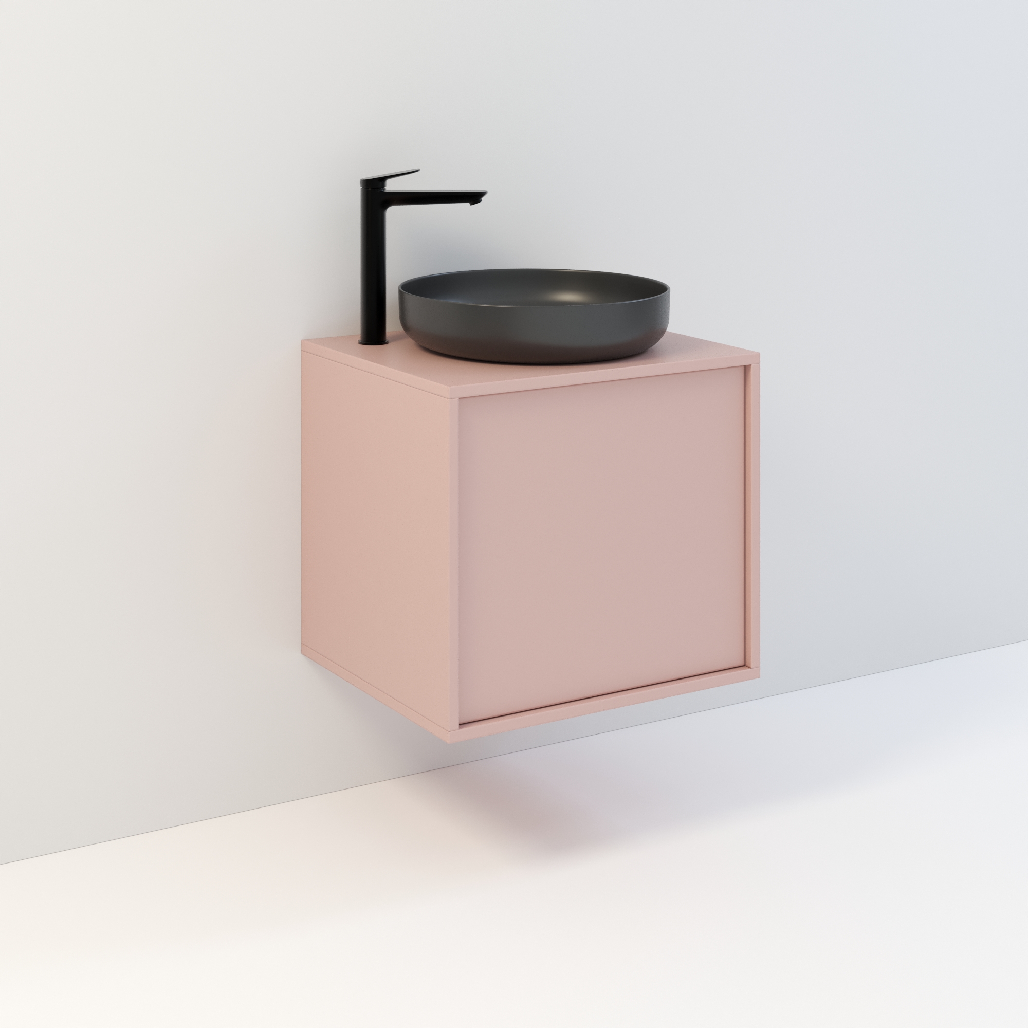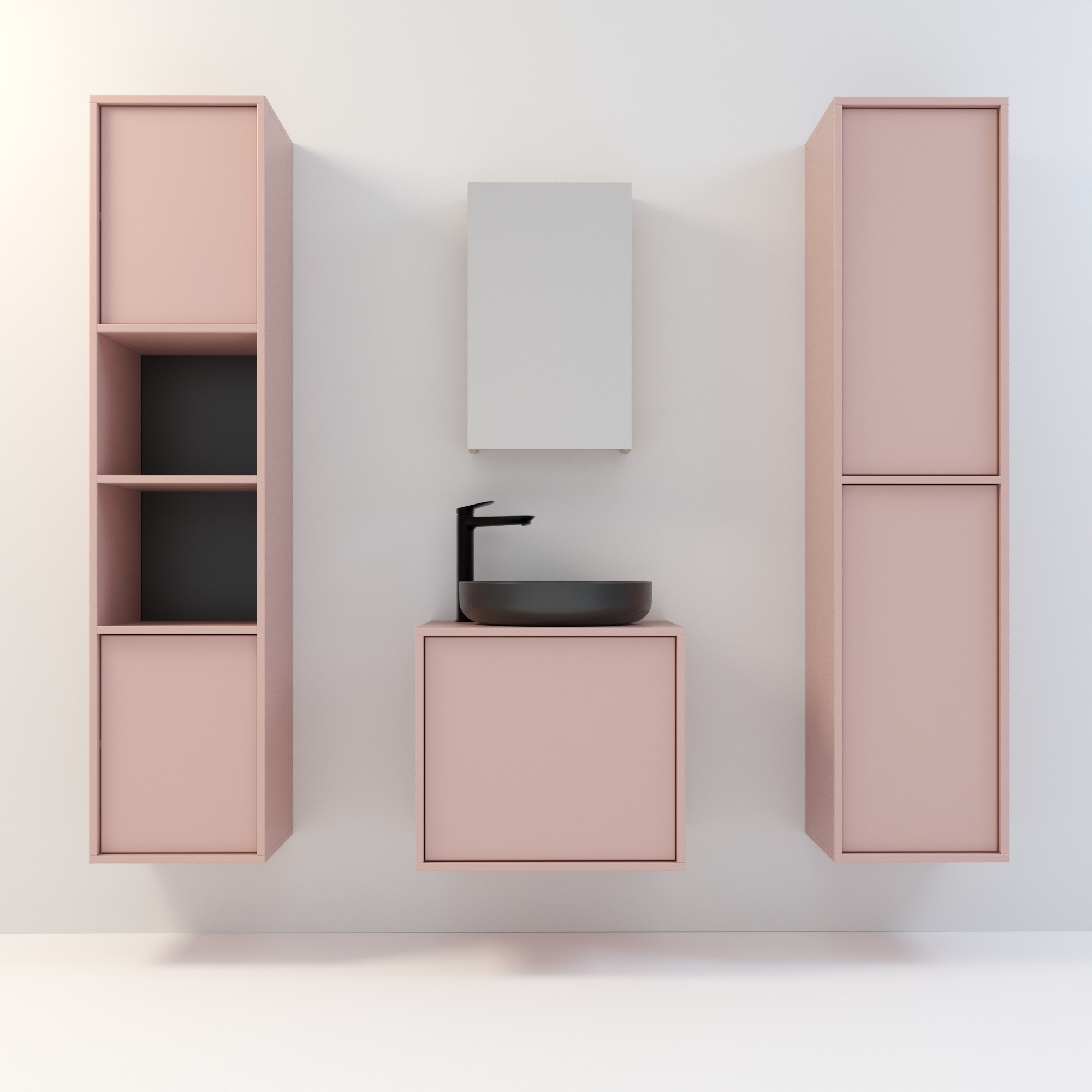 Szafka łazienkowa w stylu minimalistycznym. Zaprojektowana z myślą o osobach ceniących sobie prostotę i elegancję. Drzwi wpuszczone w korpus, otwierane za pomocą bezawaryjnych zawiasów i mechanizmu tip on. Szafka dostępna również w opcji z uchwytem drzwiowym. Szafka w całości wykonana z wysokiej jakości płyty laminowanej. Wewnątrz jedna półka. Umywalka nie wchodzi w skład zestawu.