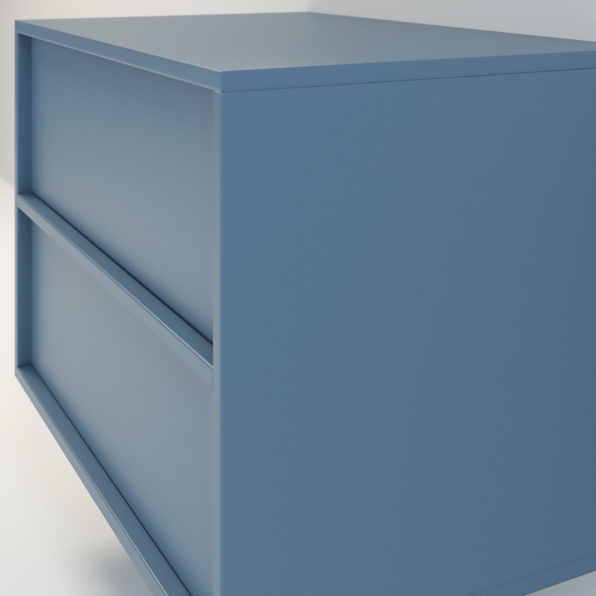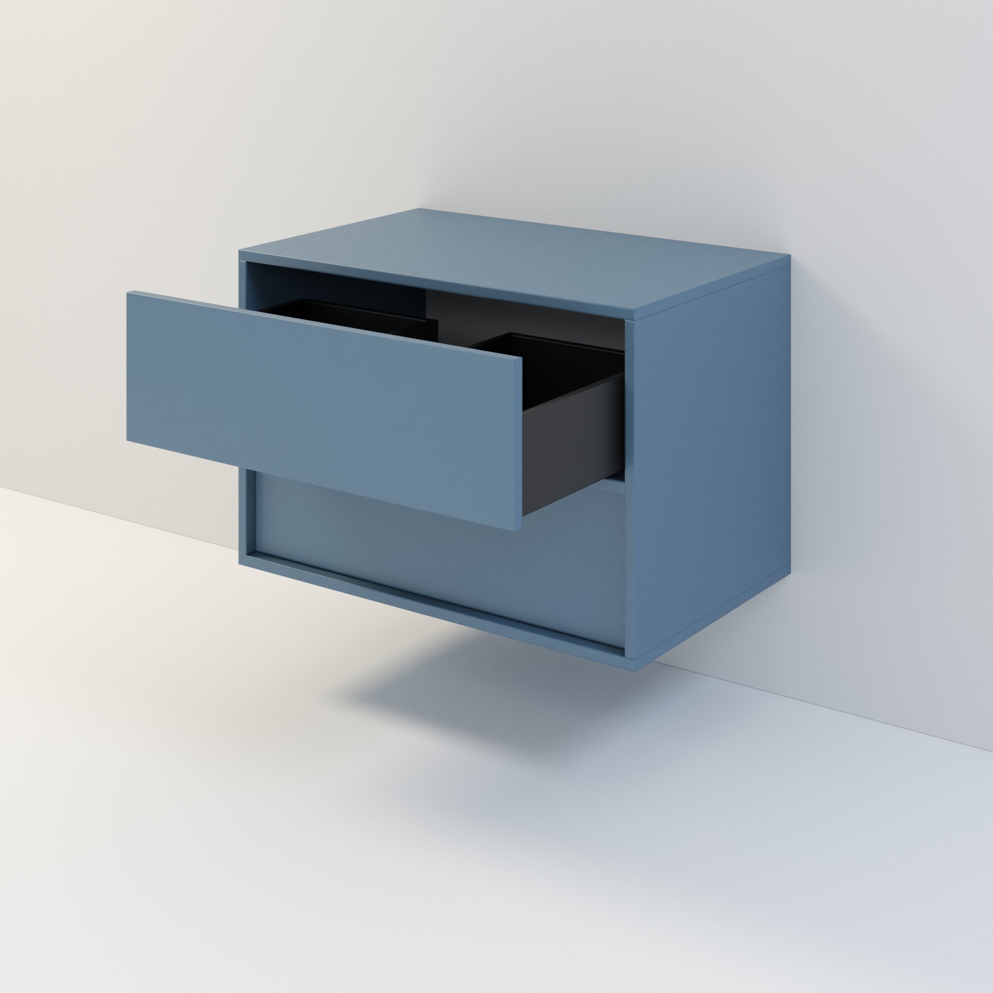 Szafka łazienkowa wisząca Minimal 2 szuflady. Szafka łazienkowa wisząca w stylu minimalistycznym. Zaprojektowana z myślą o osobach ceniących sobie prostotę i elegancję. Połączenie uniwersalnego designu z prostą formą sprawia, że szafka doskonale wpisuje się zarówno w nowoczesne, jak i klasyczne aranżacje wnętrz. Szuflady otwierane za pomocą mechanizmu „push to open” są wyposażone w synchronizatory gwarantujące płynne otwieranie i zamykanie. Szuflady w opcji z uchwytem są wyposażone w prowadnice z mechanizmem cichego domyku. W każdym z wymienionych typów prowadnic zastosowano mechanizm 3D, który umożliwia regulację frontów w 3 płaszczyznach. Szafka w całości wykonana z wysokiej jakości płyty laminowanej. Możliwość zamontowania 1 umywalki. Górna szuflada posiada wykonane centralnie wycięcie pod syfon. Szerokość wycięcia to 15 cm. Przemyślany układ wnętrza szafki ułatwia zachowanie porządku. Umywalka nie wchodzi w skład zestawu.