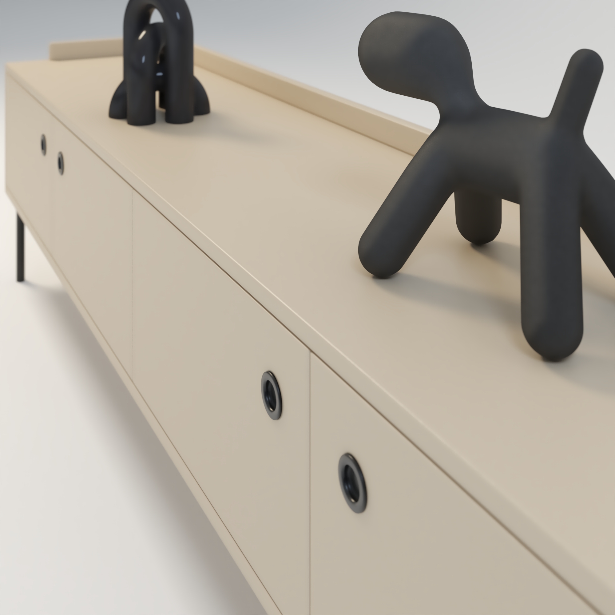 Korpus: w całości wykonany z płyty laminowanej w kolorze piaskowym.