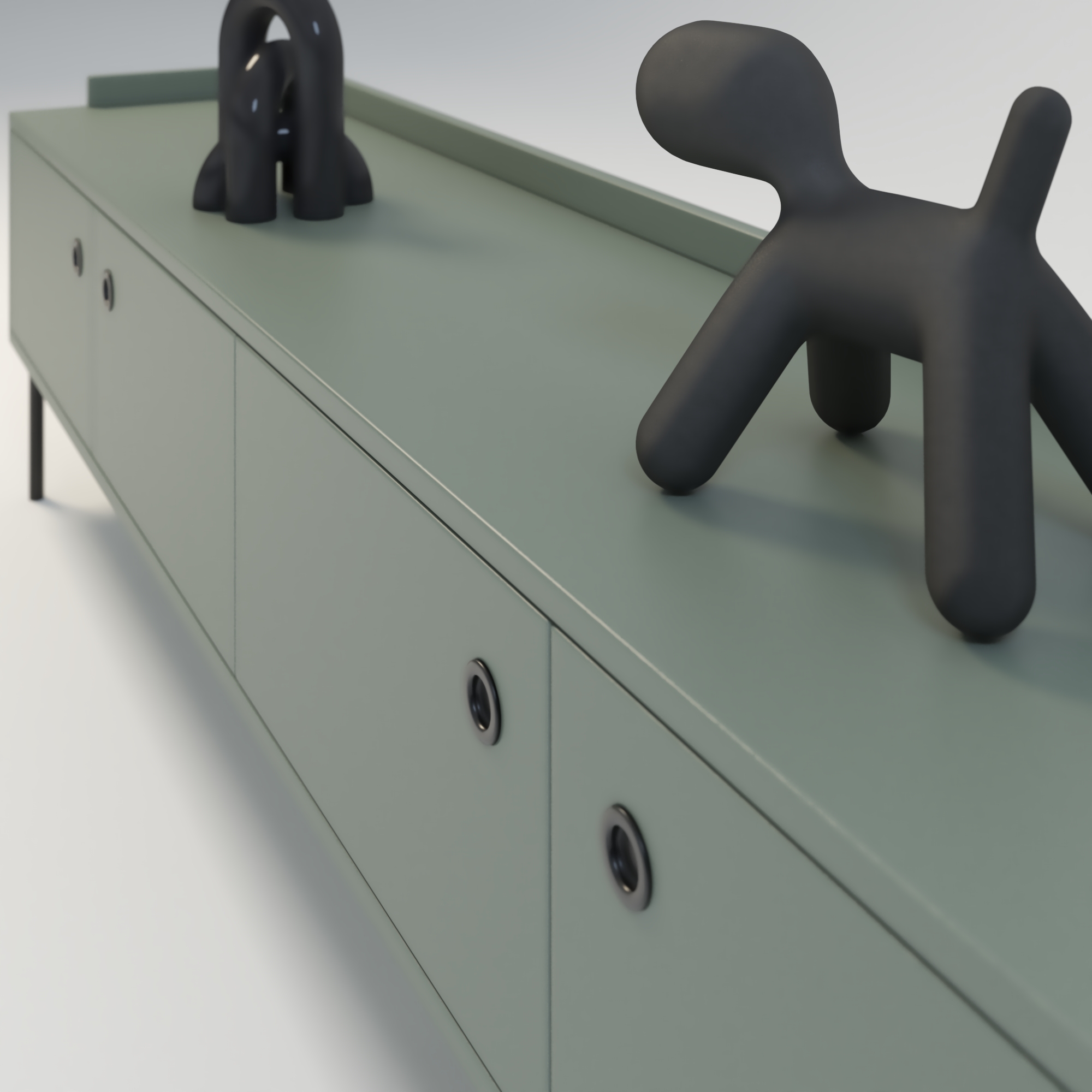 Szafka swoim wzornictwem nawiązuje do stylu japandi. Jest połączeniem japońskiego minimalizmu ze skandynawskim ciepłem i prostotą. Drzwi wyposażone zostały w zawiasy z cichym systemem domykania. Konstrukcja umożliwia przechowywanie w wielu różnych konfiguracjach. Szafka w całości wykonana z wysokiej jakości płyty laminowanej.