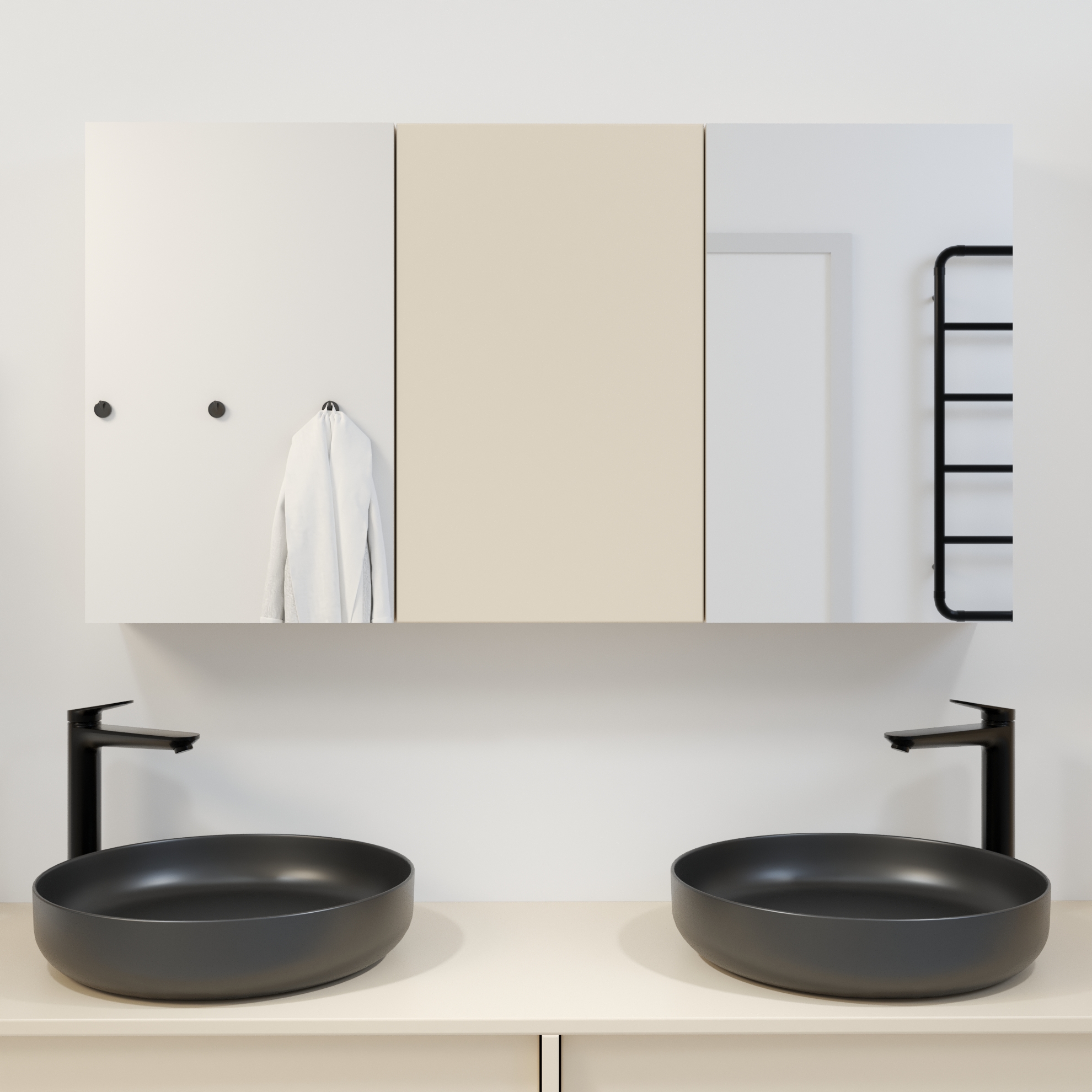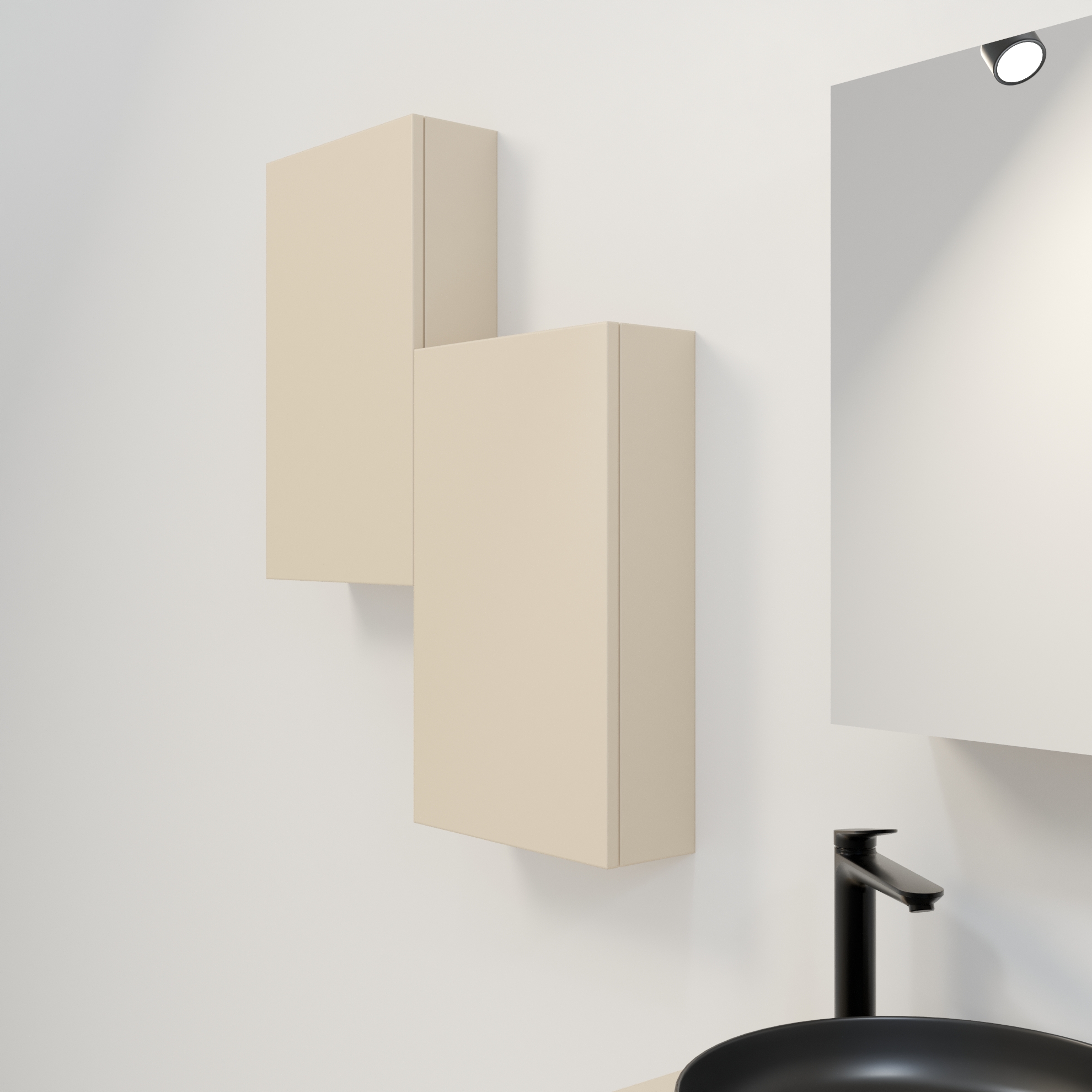 Model Kobe powstał z myślą o maksymalnej elastyczności aranżacyjnej. Możesz zestawiać go z meblami z kolekcji Minimal, Komono lub Kagawa, dzięki czemu stworzysz funkcjonalną i estetyczną przestrzeń dostosowaną do indywidualnych potrzeb. Co więcej, modułowa konstrukcja pozwala na boczne łączenie dwóch lub trzech szafek. Ułatwia to dopasowanie zabudowy do szerokości ściany lub konkretnego wnętrza. Jeśli chcesz zagospodarować przestrzeń nad umywalką lub wzdłuż dłuższej ściany, Kobe daje taką możliwość bez rezygnacji z estetyki. Szafka łączy nowoczesny wygląd z wygodą codziennego użytkowania, dlatego sprawdza się tam, gdzie liczy się przemyślana organizacja i każdy centymetr przestrzeni. To idealne rozwiązanie do funkcjonalnych i stylowych łazienek.