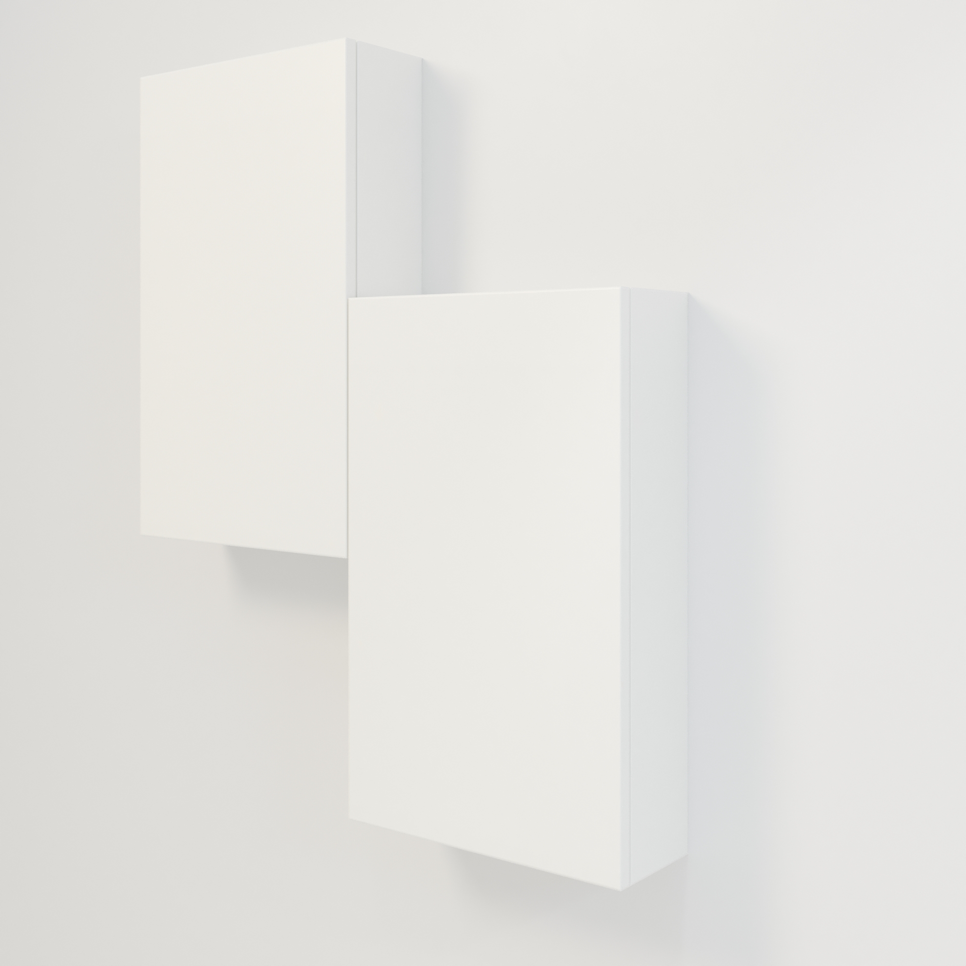 Szafka wisząca w stylu minimalistycznym. Zaprojektowana z myślą o osobach ceniących sobie prostotę i elegancję. Szafki Kobe można łączyć ze sobą bokami, tworząc w ten sposób większe moduły wiszącą składające się z 2-3 szafek. W ramach opcji konfiguracji drzwiczki mogą być otwierane na stronę lewą lub prawą. Funkcjonalna konstrukcja oferuje dużą przestrzeń do przechowywania. Szafka w całości wykonana z wysokiej jakości płyty laminowanej. Drzwiczki wyposażone w zawiasy z mechanizmem cichego domyku.